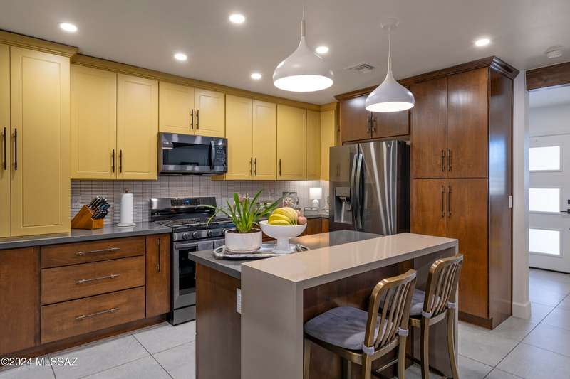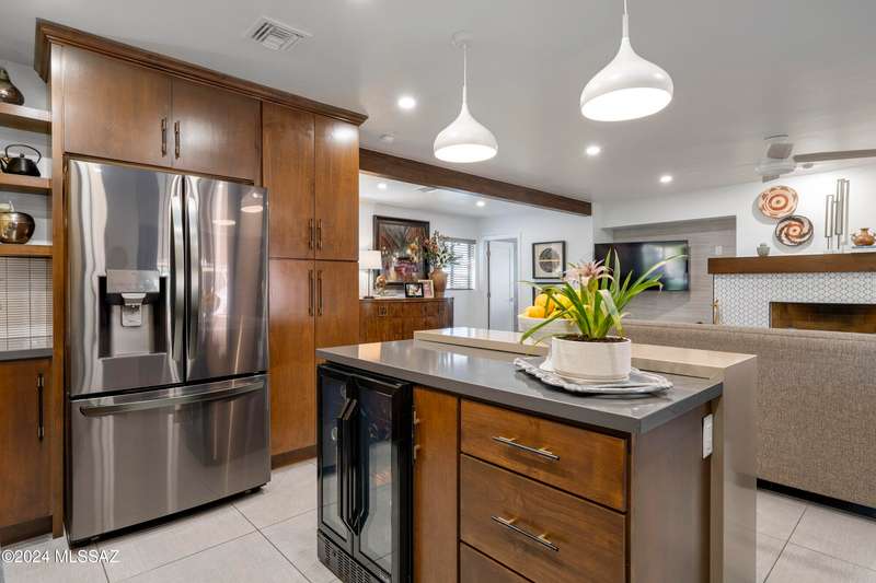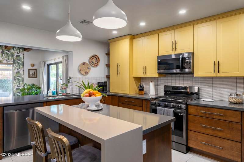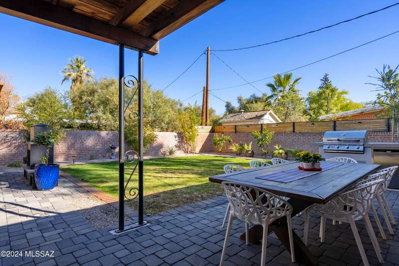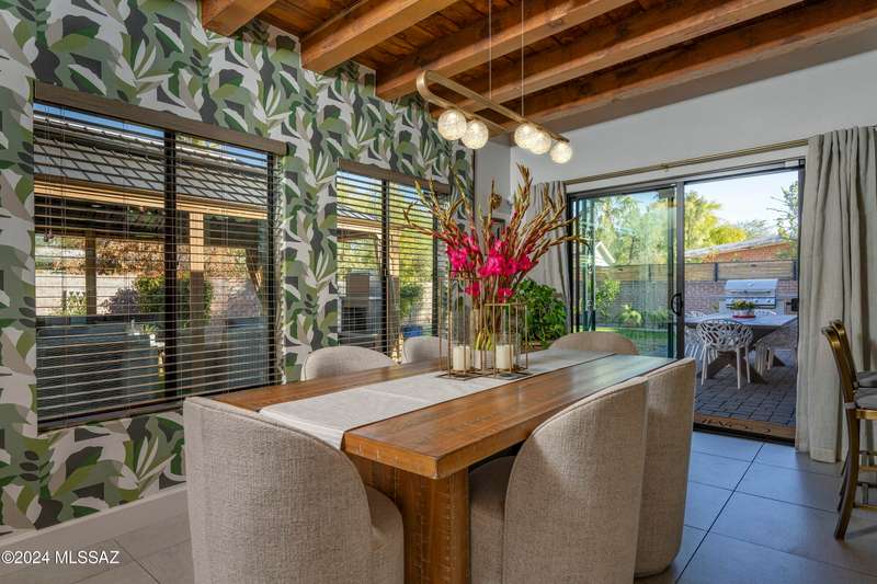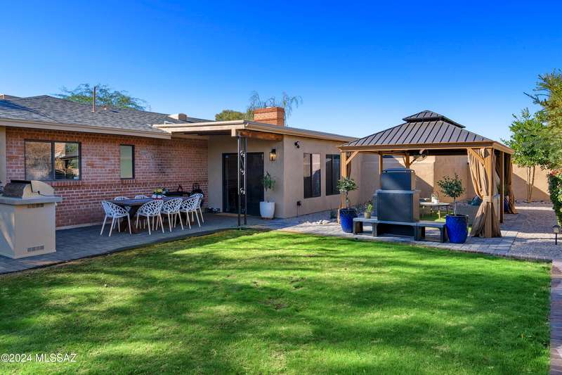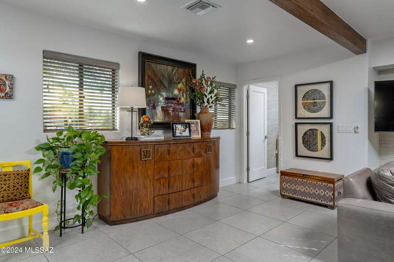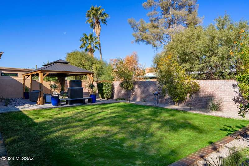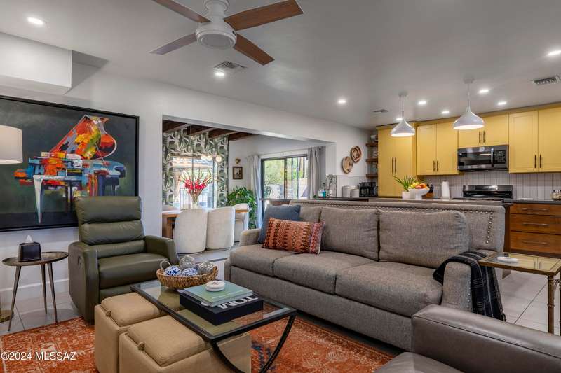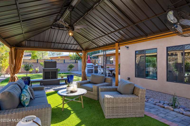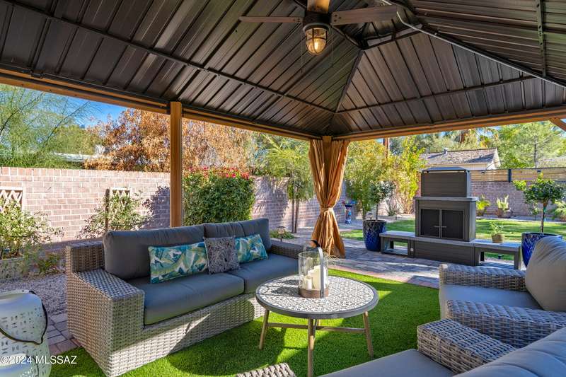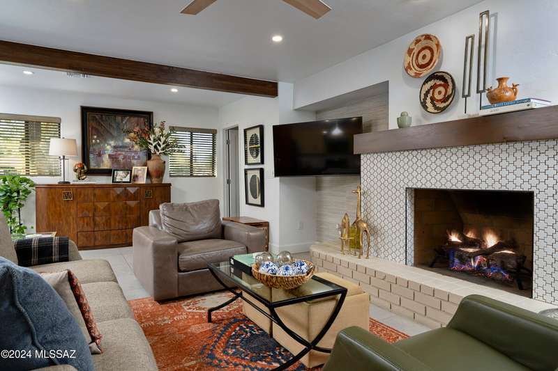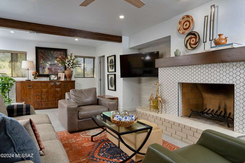 Beautifully remodeled! Every inch thoughtfully redone with upscale designer touches and finishes. Recently featured in Tucson Lifestyle Magazine. New HVAC, roof, plumbing and electric. Enter into the stunning great room w tiled fireplace opens to quartz island kitchen with two tone custom cabinetry. Seating at counter and island enhance a great entertaining space next to stunning dining room. Split floor plan features Primary bedroom w/walk in closet, bath features custom tile gorgeous cabinets, custom plumbing fixtures, lighting. Add'l guest bedrooms and bath reflect the same care and craft in design. 4th bedroom/den and laundry with sink are on opposite side. Nothing has been overlooked w/lighting, fixtures, ect, to the smallest detail. Backyard is an entertaining delight, timber framed