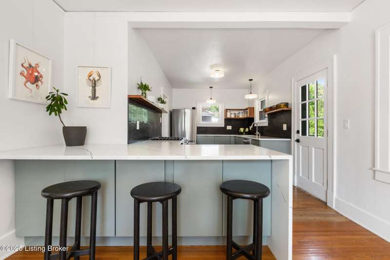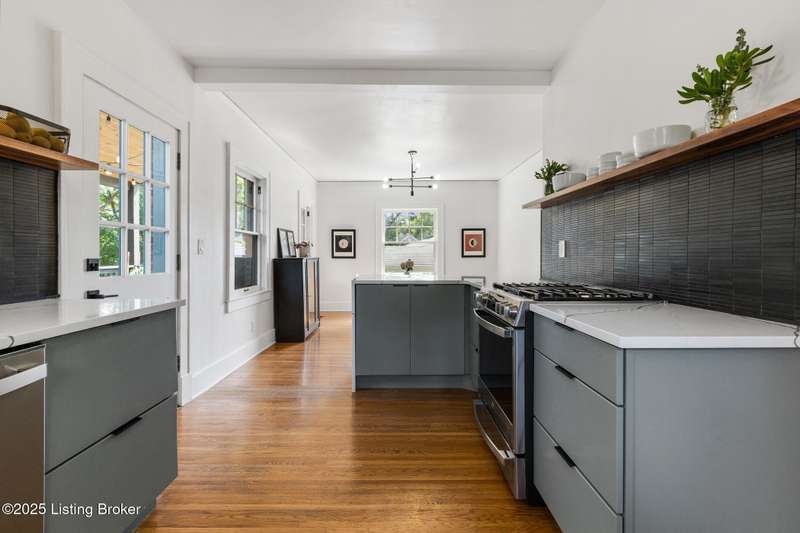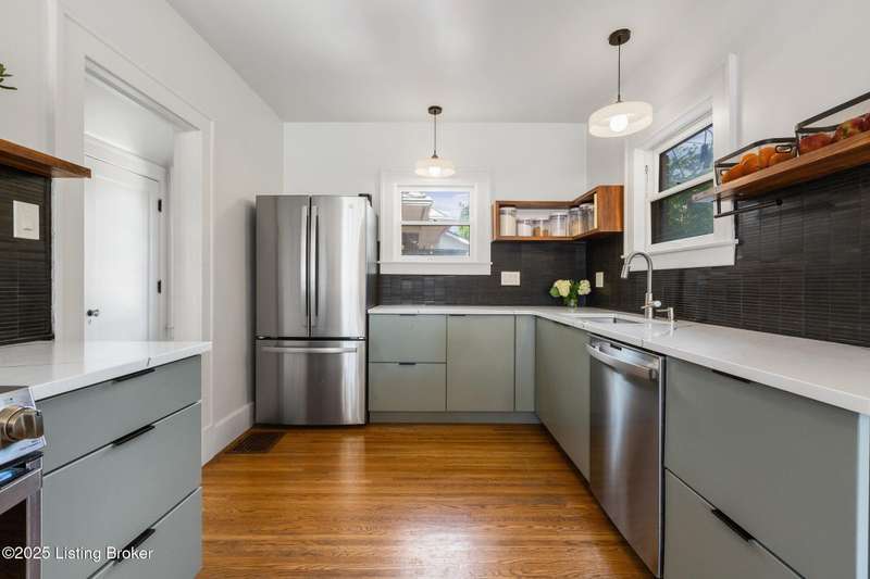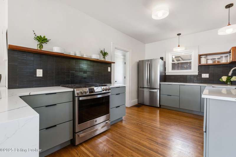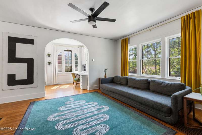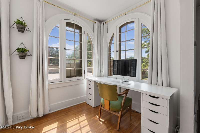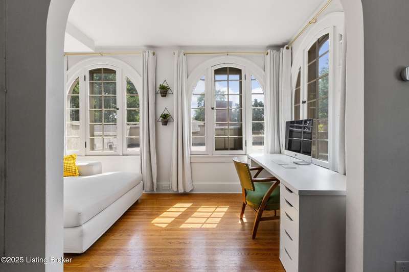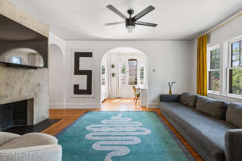 Among the ever-envied homes along Overlook Terrace, in the heart of the sought-after Highlands Belknap neighborhood, this beautifully refreshed and updated home offers modern amenities and historical charm. Through the front door, and into the entry, original hardwood floors and charming arched doorways set the tone. To the right, the spacious living room showcases an updated fireplace, ready for a ventless gas insert. Just through here, the home office is surrounded by beautiful arched windows, and allows access to the private terrace. To the rear of the home, a light-filled, formal dining room connects seamlessly to the updated kitchen, where new cabinets, granite countertops, new appliances, and custom floating shelves have a fresh and modern look. A convenient half bath is located just off of the kitchen, perfect for guests, while a covered rear deck off of the kitchen is ideal for outdoor entertaining, and stays shady and private thanks to the trees along the rear of the property. Upstairs, the spacious primary suite is a fabulous retreat. Here, an updated en suite bathroom boasts a double-sink vanity and glass enclosed walk-in shower, as well as two walk-in closets. Two other bedrooms and a full hall bath round out the second floor. The unfinished basement provides ample storage space, and offers a walkout to the fully fenced rear yard. This incredible Highlands home is located near Hal Warheim Park, just minutes from all the shops and restaurants of Bardstown Road, and so close to the incredible green spaces and trails of Cherokee Park. A quick drive to Louisville's suburbs, campuses, and booking neighborhoods within the Watterson, this is one that offers the perfect blend of convenience and community.