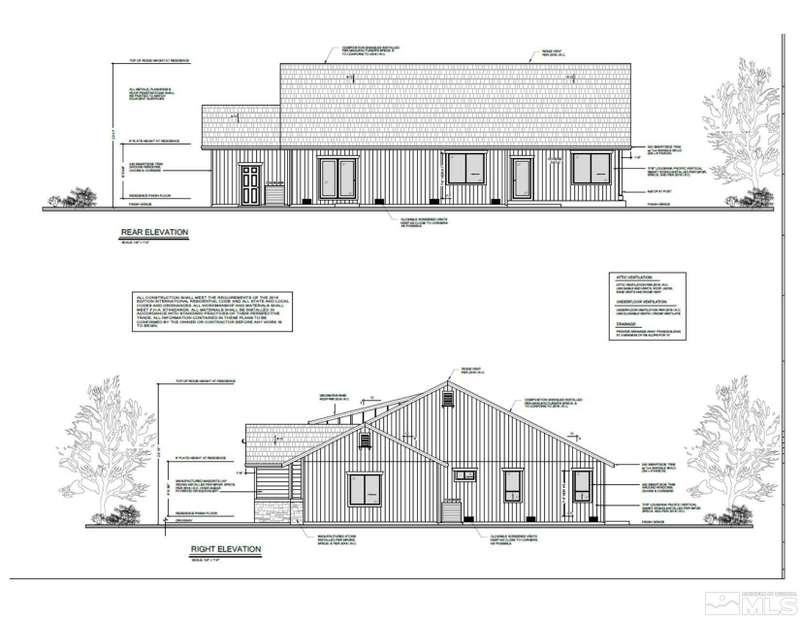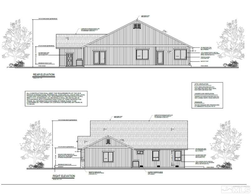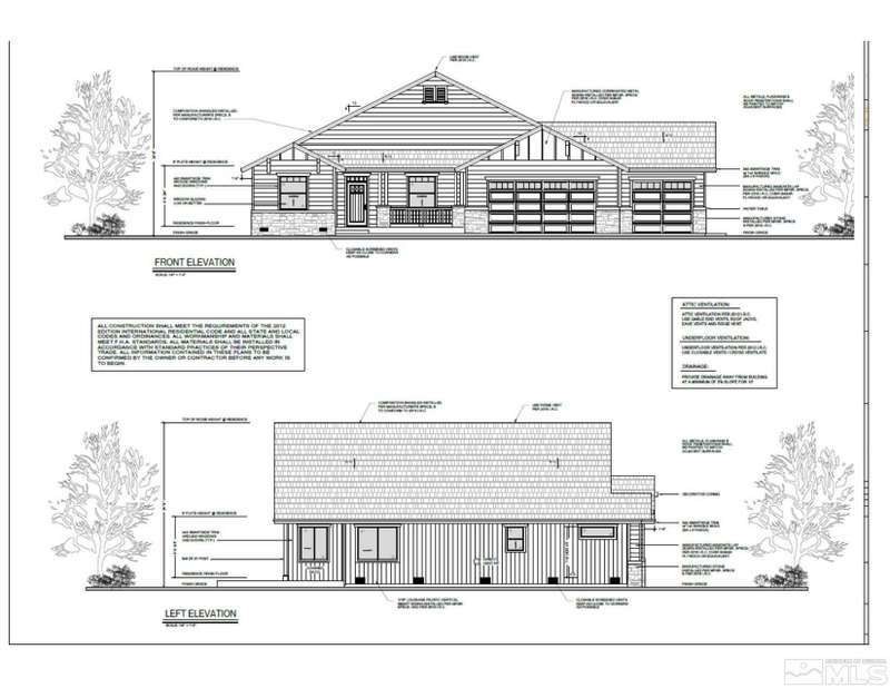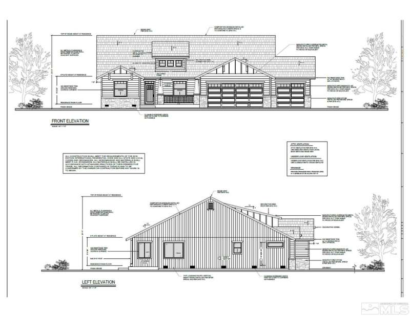 New home in Smith Valley by one of the best builders in the area, (call for builder info) 2034 sf, 3 bedrooms 2.5 baths and a large finished garage. Located on a 2-acre corner lot on a quiet cul-de-sac, with great views for every direction. Paved roads and underground power and no HOA fees are a bonus. 2 elevations to choose from. The open floorplan and vaulted ceilings make for an inviting environment. Choose from a freestanding wood, pellet, or gas stove to add additional warm to the room. There is a huge pantry, separate laundry room and all bathrooms have double sinks. Flooring is Luxury Vinyl Plank and carpet in the bedrooms. You can still make some minor changes to the plans. Construction will start once final plans are approved by the buyer and builder and Lyon County. The build will take 8 to 10 months depending current market conditions and supply chains. The Pictures are of a similar home. Plans, features and pricing are subject to change and market conditions before and during construction. Construction financing provided by builder/seller with the required down payment. All the buyer needs is the takeout loan at the end of the project if not an all cash purchase. Call Listing agent for details. BUILDER RESERVES THE RIGHT TO INCREASE PRICE OF THE HOUSE DUE TO POTENTIAL INCREASES IN CONSTRUCTION COSTS AND MARKET CONDITIONS.