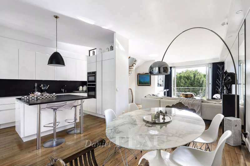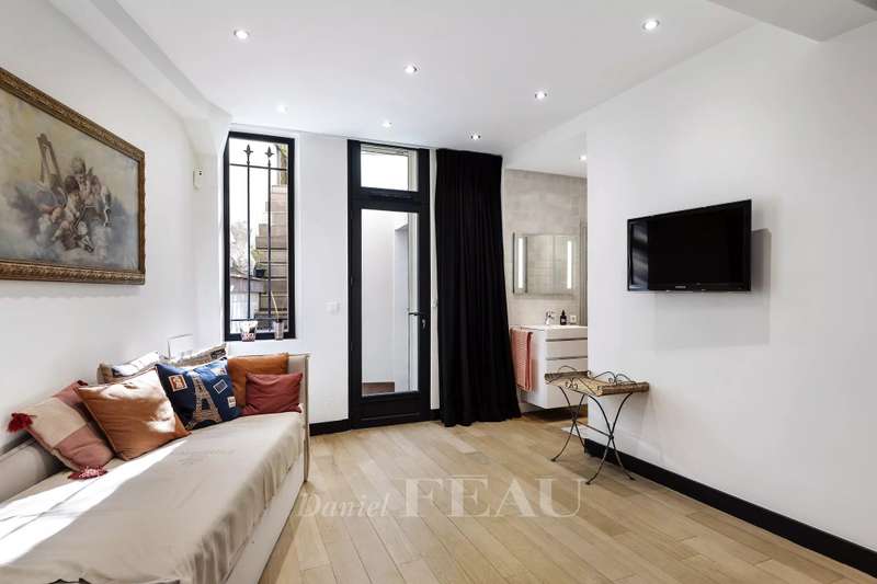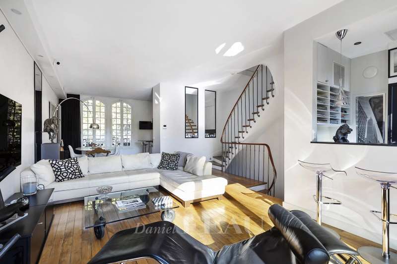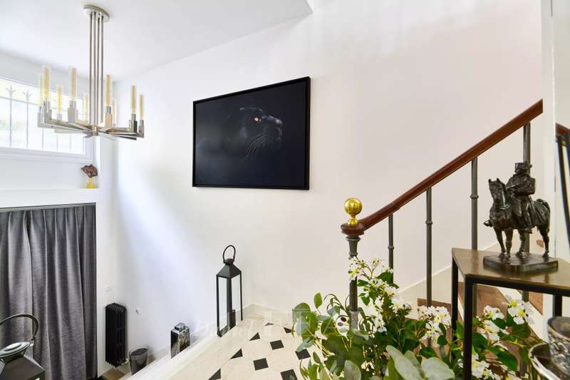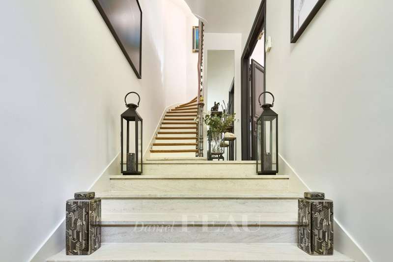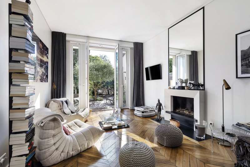 Sole Agent. This peaceful early 20th century property with a garden and a garage is located in the heart of the capital’s Auteuil neighbourhood. Bathed in sunshine, it offers about 230 sqm of living space including a living/reception room with a dining room and open-plan kitchen, a drawing room with a fireplace opening onto the landscaped garden, and four bedrooms with bathrooms. Air-conditioned and in perfect condition. Possible premises for a self-employed professional.