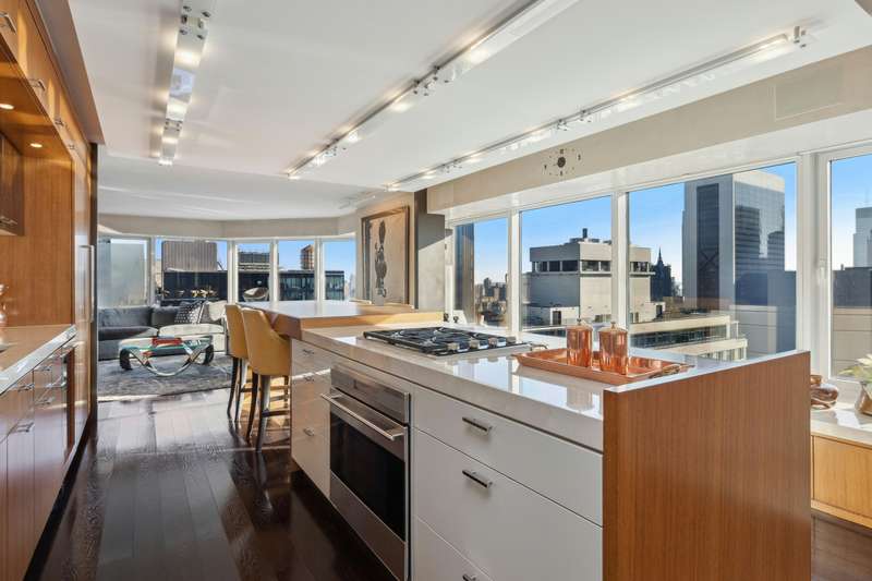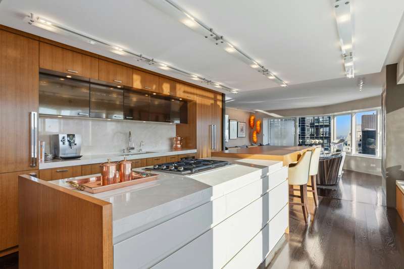 At the heart of this extraordinary residence is a 53-foot open-concept living, dining, and kitchen space, ideal for both grand entertaining and intimate gatherings. Sixteen oversized windows flood the space with natural light, providing breathtaking north, east, and south triple exposures, with partial views of Central Park enhancing the sense of openness. Bespoke millwork, custom finishes, and designer fixtures create a seamless flow of refined beauty throughout. The chef's kitchen is a standout, boasting marble countertops, custom cabinetry, and premium appliances, making it as visually stunning as it is functional.