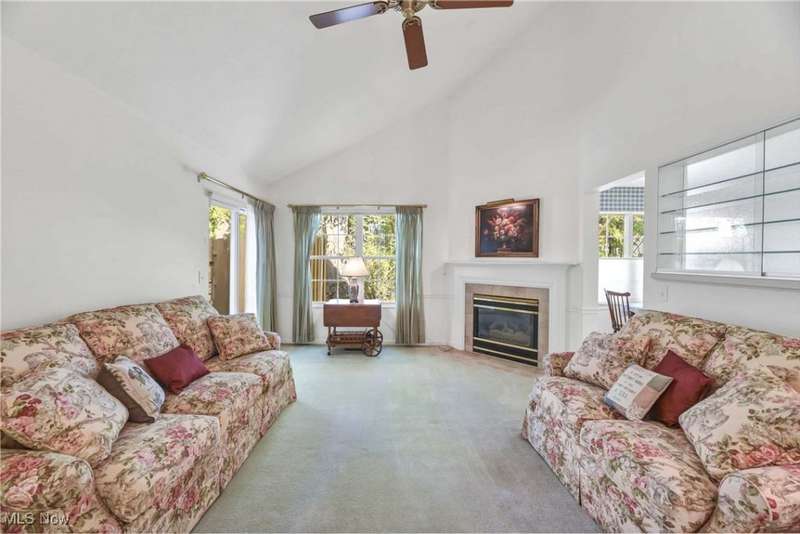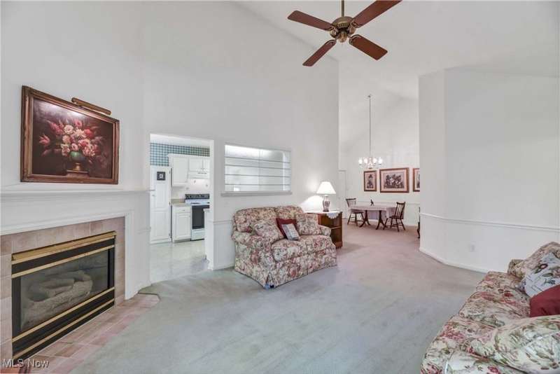 Welcome to this stunning ranch-style condominium located in the highly desirable Cinnamon Woods community, offering the perfect combination of privacy, convenience, and comfort. This spacious 1,291 sq. ft. home provides easy one-floor living with no steps and a thoughtful layout designed for today's lifestyle. The open and airy living room features vaulted ceilings, a cozy gas fireplace, and sliding doors leading to your private fenced patio, where you can enjoy peaceful views of the open green space and wooded lot behind. A formal living room offers the perfect setting for entertaining family and friends, while the sun-filled windows throughout the home create a warm and inviting atmosphere. The large owner's suite includes a private en-suite bath and a generous walk-in closet, providing a true retreat. A second bedroom and a full hall bath offer comfort for guests or a home office option. The spacious eat-in kitchen is equipped with abundant cabinet and counter space, a large pantry closet, and a charming breakfast nook perfect for everyday meals or morning coffee. Added conveniences include a first-floor laundry room and a 2-car attached garage. Maintenance-free living at its best ? the monthly fee covers landscaping and snow removal, giving you more time to relax and enjoy. Nestled on a private cul-de-sac yet close to all of North Olmsted's shopping, dining, and amenities, this beautiful condo truly feels like home!