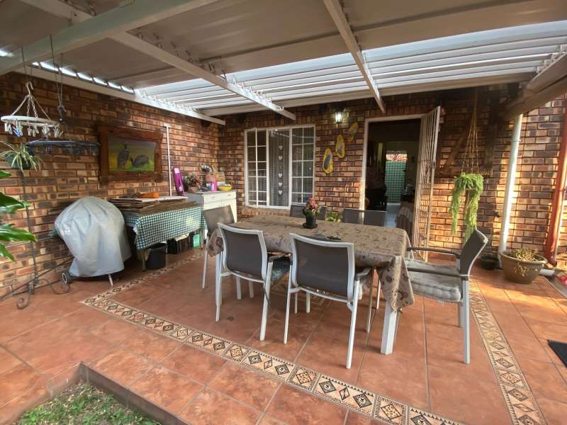 Discover comfort and convenience in this 2-bedroom, 1-bathroom duplex nestled in a security complex. With 113 sqm of living space, this home offers a well-designed layout perfect for tranquil living. The ground floor features a welcoming lounge and a newly fitted kitchen boasting granite tops, an eye-level oven, and plenty of cupboard space. Step outside to a private patio with a louvre awning, ideal for relaxing or entertaining, overlooking an established garden. Solar panels with inverter Upstairs, a versatile open area can serve as a study, hobby space, or even a 3rd guest bedroom, providing flexible options for your lifestyle. Additional features include 1 open parking bay, 24-hour guarded security, and access control for complete peace of mind. This move-in ready duplex combines style, security, and practicality – the perfect place to call home.