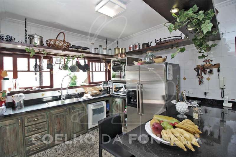 Casa em Condomínio no bairro Aldeia da Serra com 451m² área construída, 4 dormitório(s), 2 suíte(s), 6 vaga(s), 4 banheiro(s), piscina, aceita permuta, sauna, dep. de empregados, reformado (a), varanda, aquecedor solar, pé direito duplo.