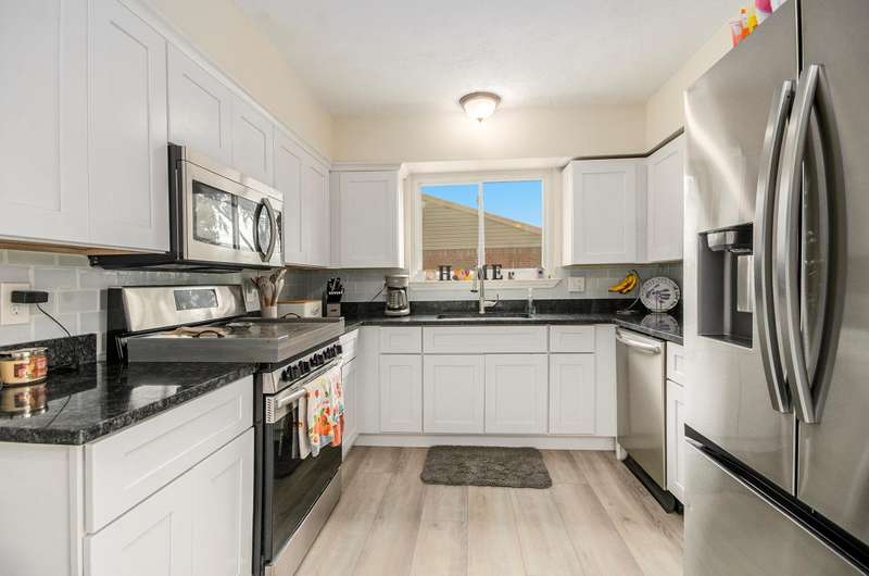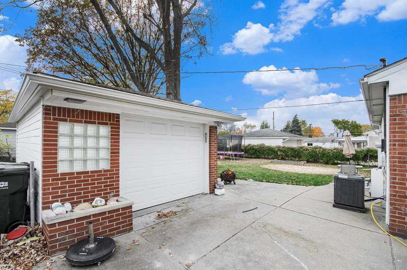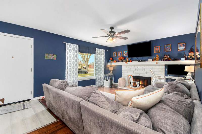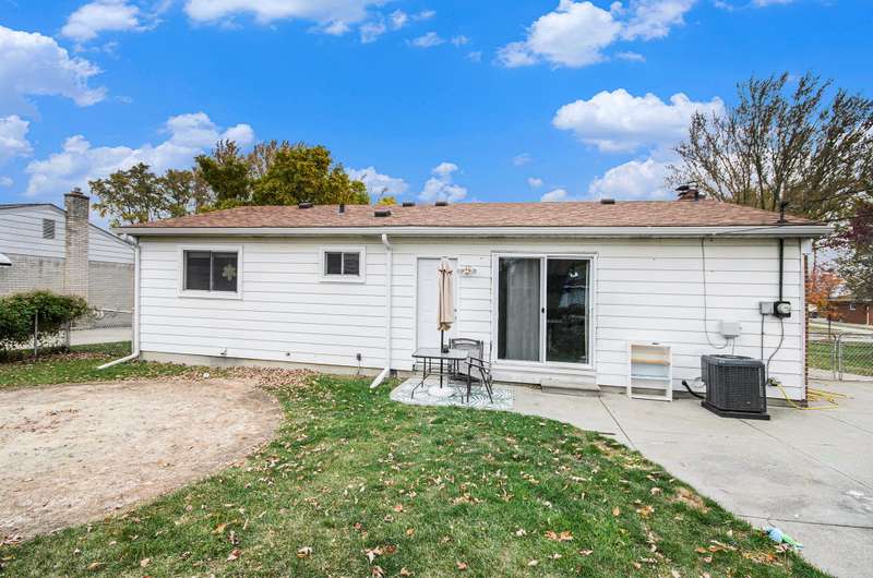 Welcome home! This charming Sterling Heights ranch is perfect for first-time buyers or anyone looking to downsize. You’ll love the cozy living room with real hardwood floors and a brick fireplace, plus three bedrooms with hardwood floors and ceiling fans. The kitchen features granite countertops, a tile backsplash, and stainless steel appliances, with the washer and dryer included. Major updates give peace of mind — roof (2018), furnace (2018), A/C (2020), windows (2022), and a newer sump pump. The finished lower level with an egress window adds extra living space. Enjoy a fenced backyard, one-car garage, and a friendly neighborhood with sidewalks and nearby shopping. No HOA, low utility costs, and a lifetime waterproofing warranty make this one a great find! Exclusions: trampoline, refrigerator, TV mount.