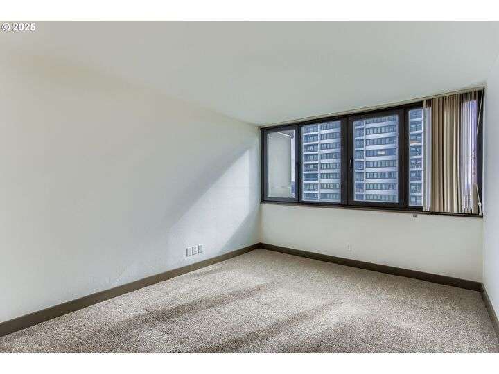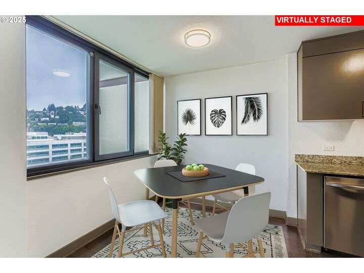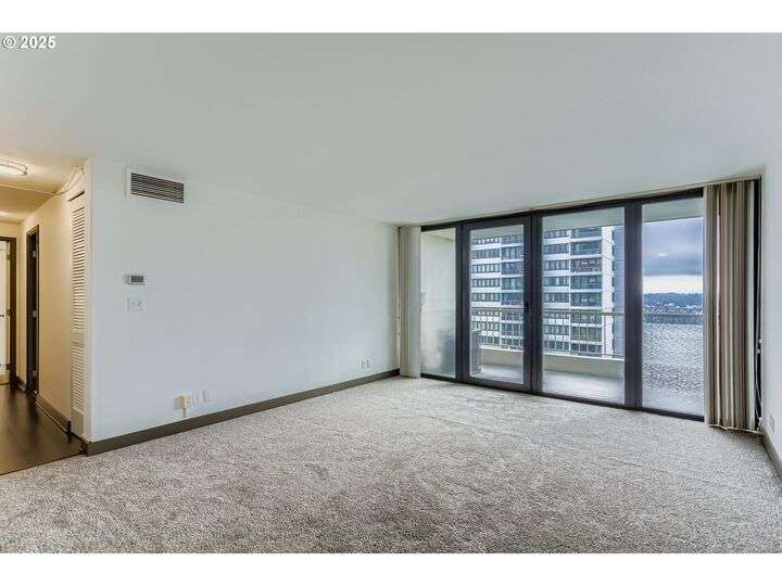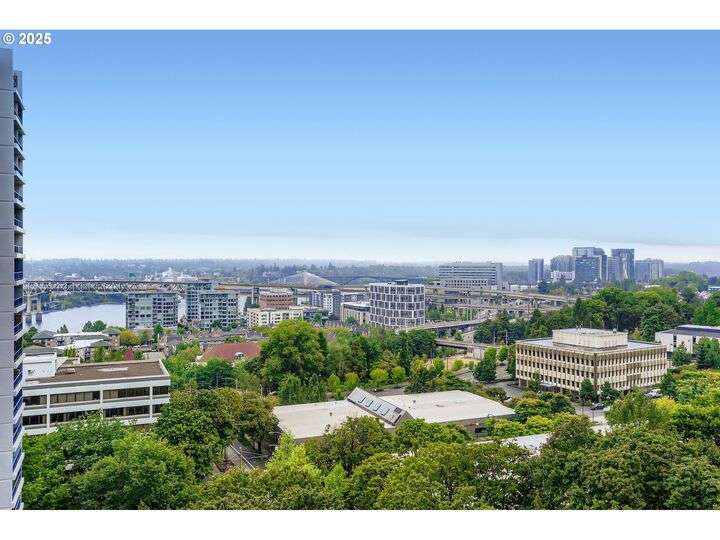 There's never a dull moment from the Panoramic City-Skyline & Sparkling River views from every corner of this magnificent high-rise residence. The outdoor terrace is your private gateway to the kinetic vistas the Willamette River and the shimmering Cityscape. A cozy primary bedroom suite and an additional bedroom offers the flexibility of space you've been hoping to find in this freshly painted, newly carpeted downtown condominium. Secured, deeded parking for 1 car and an additional storage unit round out this extraordinary value. Skidmore, Owings & Merrill designed Harrison West, sits nestled in the historically protected Halprin Open Sequence of parks & fountains in the bustling South Downtown Arts & Education District. PSU, OHSU and the waterfront are right at your doorstep, bike or Trimet to all the rest. Contact your agent to schedule a private showing today!