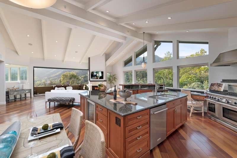 The oversized two-car garage offers ample storage and a workshop area, while the flexible floor plan presents a convenient dual-living option. Combining contemporary elegance, cutting-edge features, and an unbeatable Montecito location, 62 Canon View is a rare opportunity to experience the best of canyon living.
