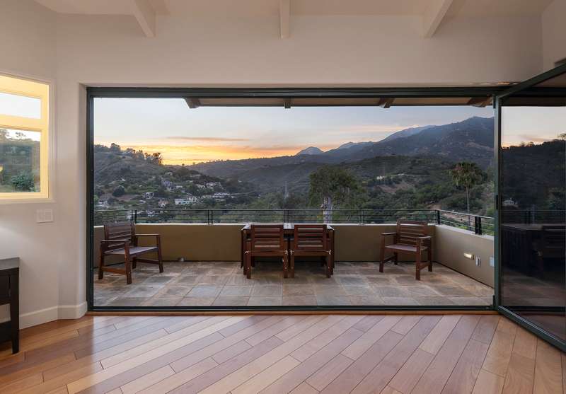 Situated above Sycamore Canyon on Montecito's western edge, 62 Canon View is a stunning contemporary retreat that offers privacy, quality, and breathtaking mountain and canyon views. Located in the Eucalyptus Knolls community and within the award-winning Cold Springs School District, this gorgeous four bedroom, three- and one-half bath home on a private one-acre parcel provides a serene sanctuary just minutes from both Coast Village Road and Downtown Santa Barbara. Quality construction is evident from the moment one passes through the large custom copper front door. Views abound from nearly every room, deck, and patio. The open floor plan seamlessly integrates the main living areas, including the kitchen, dining, and living rooms, all of which feature soaring ceilings and hardwood floors. A cozy fireplace anchors the living room, and a dramatic six-panel bi-fold glass wall perfectly frames the stunning view of Cathedral Peak.