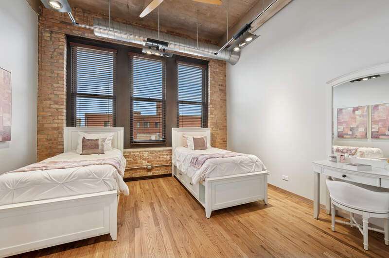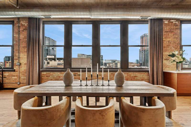 Welcome to Fulton Market, one of the hottest and most sought-after neighborhoods in Chicago. This multi-level penthouse residence offers a spacious 4575SF open floor plan living space with spectacular, unobstructed and unprecedented Chicago skyline views. Many upgrades in 2025 brings a fresh look to this residence including the chef's kitchen loaded with all the lux amenities you'd expect including custom cabinetry, a massive island for entertaining, and high-end appliances from Miele, Wolf, and Sub Zero. With four oversized bedrooms, an oversized family room/playroom, and a guest room/office, this home offers plenty of space. The oversized primary bedroom features twin walk-in closets, and each of the other bedrooms includes large walk-in closets and access to the centrally located playroom/rec room. Other features of the home include solid newly sanded and stained hardwood floors in 2025 throughout; built-in custom cabinetry in each room, and a walk-in laundry room. The property offers three deeded parking spaces additionally available: two outdoor spaces and one indoor space all behind the secure automatic entry gate. Sellers currently swap one outdoor spot for an indoor garage space which could continue to buyers. Located in the top-ranked Skinner Elementary School District, this home is also conveniently located near world-class restaurants, iconic festivals, and popular nightlife offerings such as Soho House's Fox Bar, The Press Room, CH Distillery, and City Winery. Easy transportation to and from the core central business district, the parks, and the lake and beyond. Common capital improvements are completed.