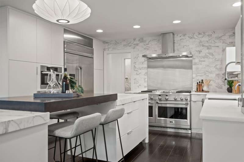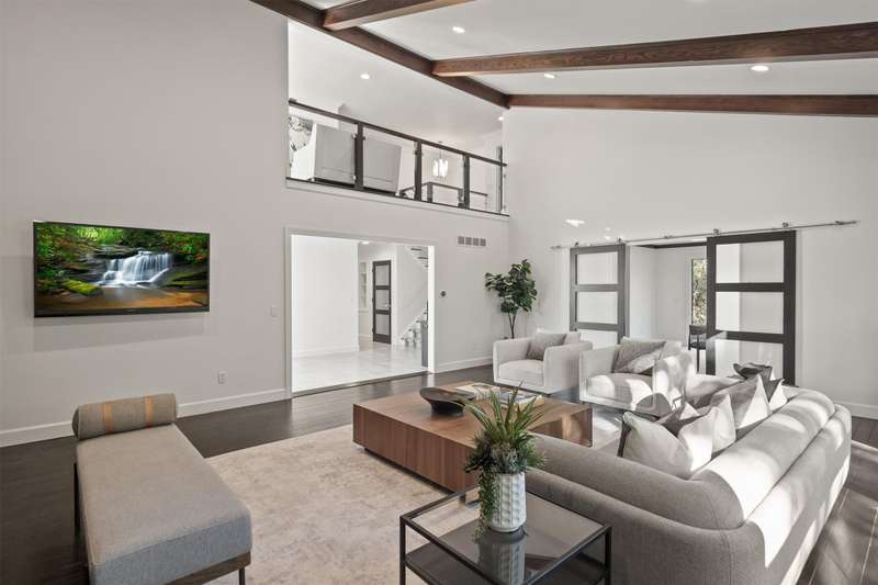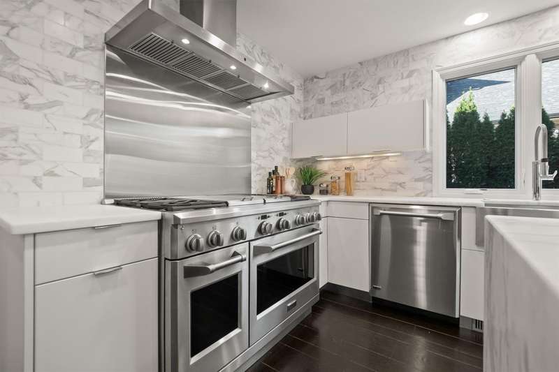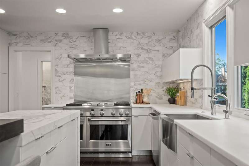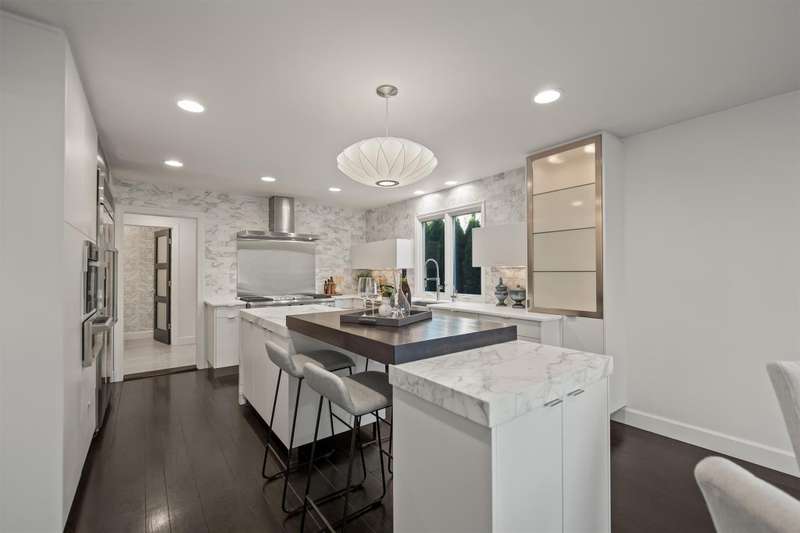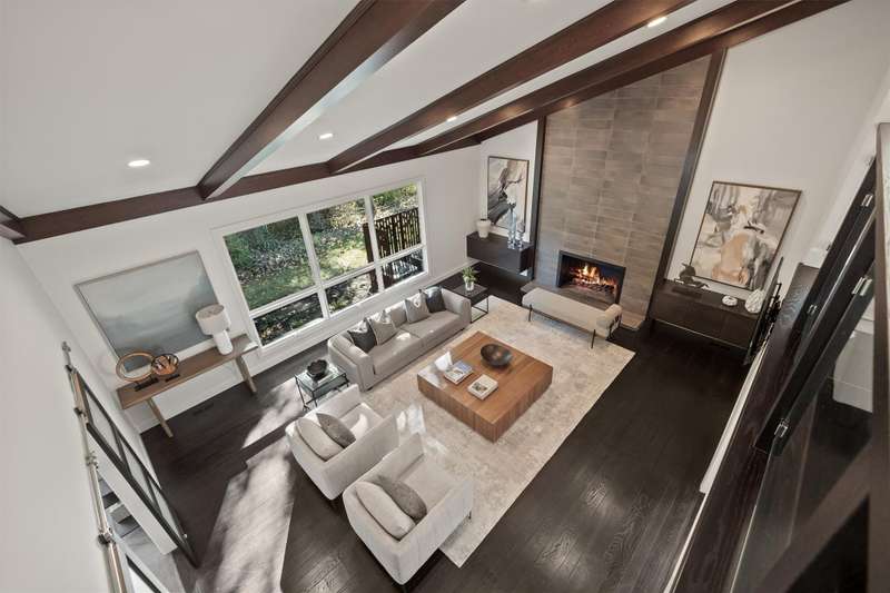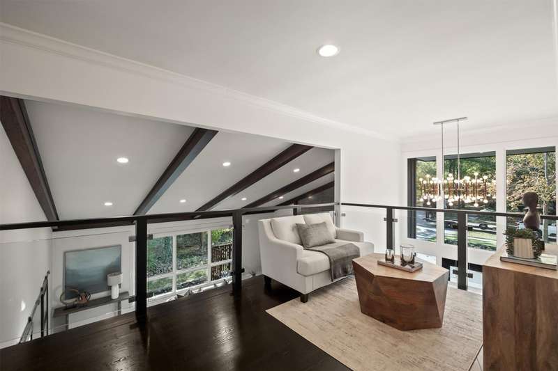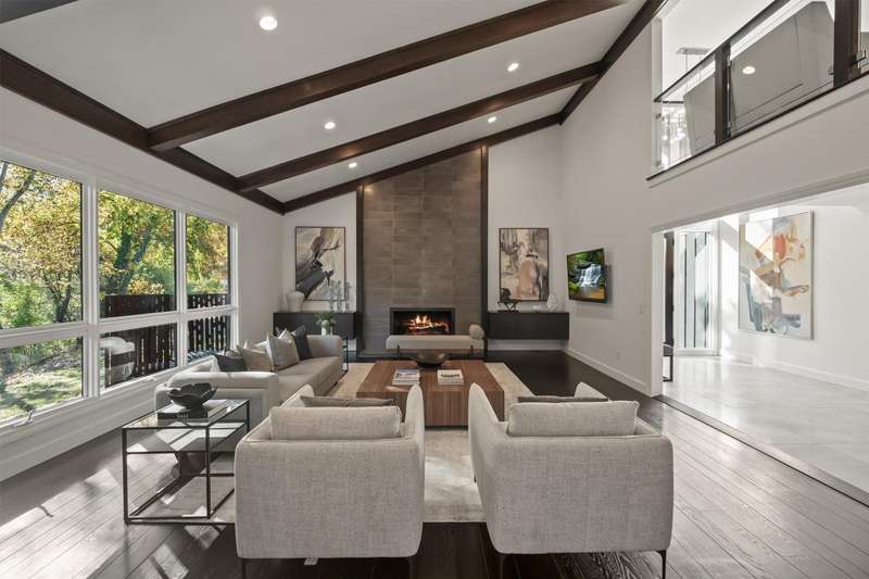 Modern elegance on one of the premier streets in Quarton Lake Estates! Just over the bridge, north of Oak, on Lakeside Drive. Impeccably designed & completely renovated, blending mid-century & modern refinement. Set on a serene lot with the side & back yards surrounded by protected woodlands owned by the City of Birmingham, with the Rouge River flowing through it. Circular driveway, glass paneled garage door & large glass front door with sidelights are distinguishing first impressions. Two-story foyer opens to living room featuring a fireplace flanked by John Morgan built-ins & a vaulted, beamed ceiling. Sliding frosted glass doors open to the adjacent library/den. Floor-to-ceiling windows in the library & large living room windows, all with southern exposure, create a sun-filled interior. Stunning John Morgan Perspectives kitchen. Refinished marble countertops, marble tile backsplash. GE Monogram gas range, four burners, a grill & griddle. GE Monogram refrigerator, warming drawer & dishwasher, Miele microwave. Marble waterfall island, butcher block center, seats four. Stainless steel farmhouse sink. Adjacent room for a breakfast nook or cozy seating area with access to the deck. Glass staircase banister. Second-floor loft sitting area. Large primary suite, John Morgan spa-like bath. Oversized steam shower, tub, water closet. An enormous walk-in closet could accommodate a large clothing island, desk, or exercise equipment. Marble coffee/wine bar, beverage fridge. Two additional bedrooms and two baths complete the upstairs. 2nd floor full-size stackable laundry. Endless possibilities in the 1,800 SF in the unfinished LL, with additional laundry. Exposed aggregate patio overlooking the wooded backdrop. New roof 2023, HVAC 2024. Birmingham Schls: Quarton, Derby, Seaholm. Step out your front door to the walking trail around Quarton Lake. A short stroll to all the dining & shopping Downtown Birmingham has to offer. Home shows like new construction. Pristine condition!