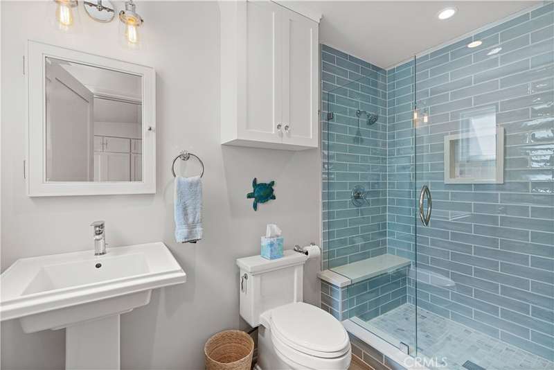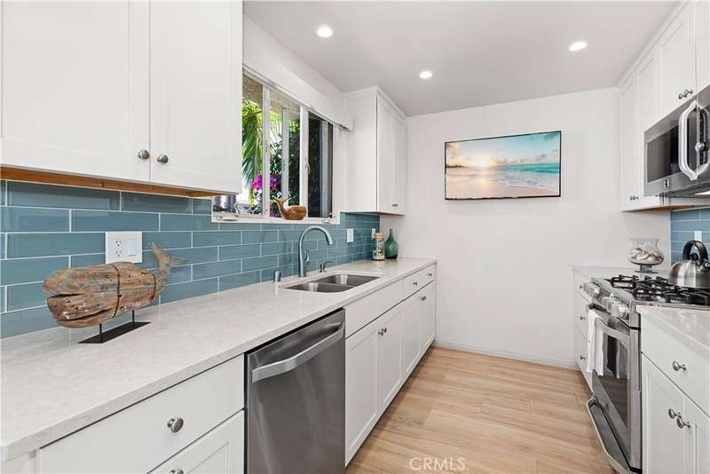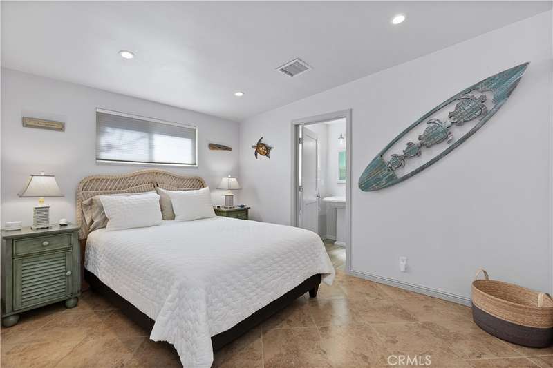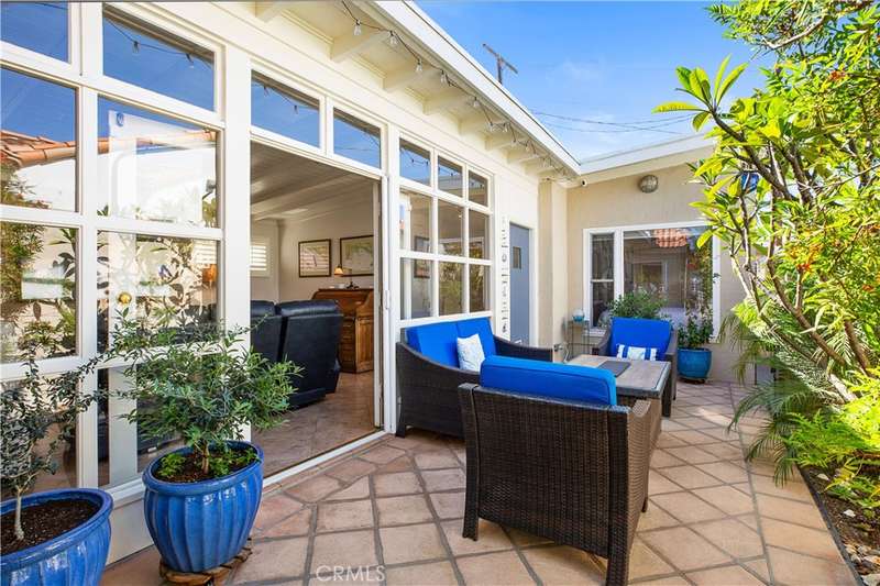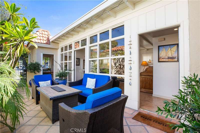 Located in the heart of Naples Island, this pristine 2 bed, 2 bath beach house offers the perfect blend of classic character and modern comfort. Originally built in 1949 and thoughtfully remodeled throughout, the home showcases mid-century design elements, including beamed and vaulted ceilings in the living room and a dramatic stacked-stone fireplace. A private courtyard entry opens to a beautiful outdoor entertaining space, seamlessly connected to the light-filled interior through French doors and a wall of windows. The updated kitchen features stainless steel appliances, custom backsplash, quartz countertops, and a charming built-in banquette dining nook. Both bathrooms boast custom tiled showers, and the two spacious bedrooms include a serene primary suite with attached bath. Move-in ready and just steps from the canals, shops, and dining--this is the ideal coastal retreat!