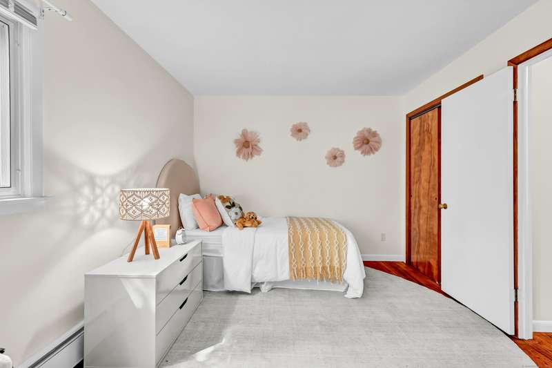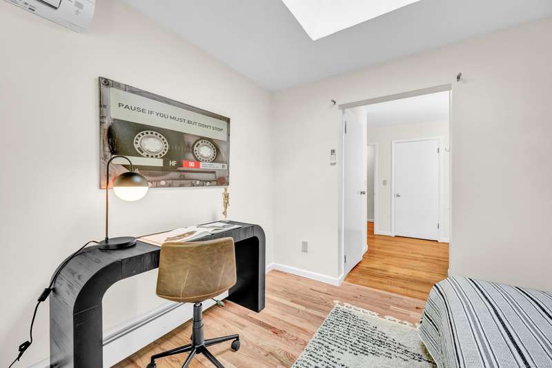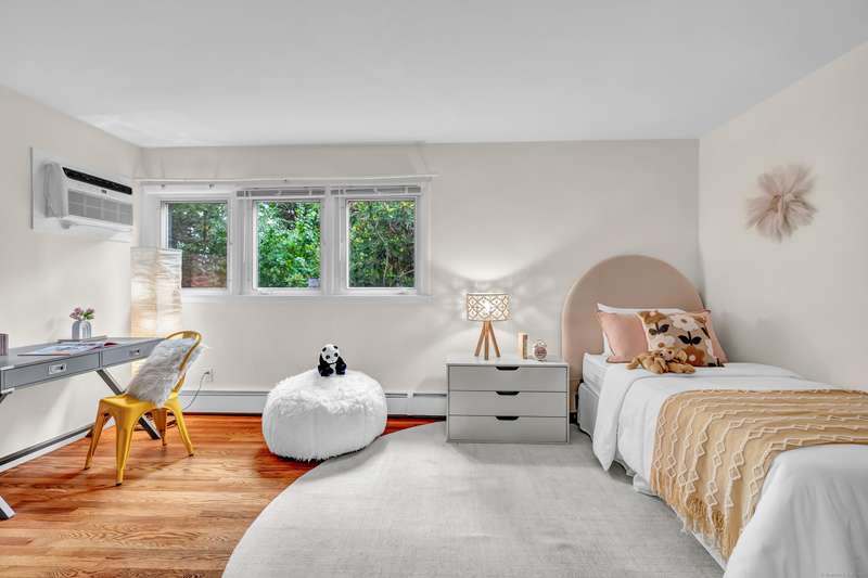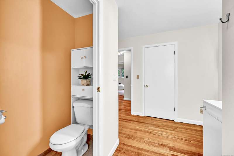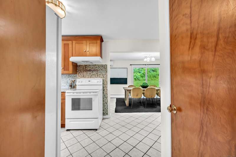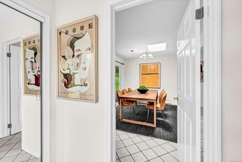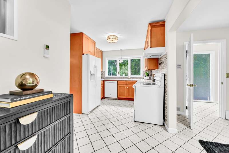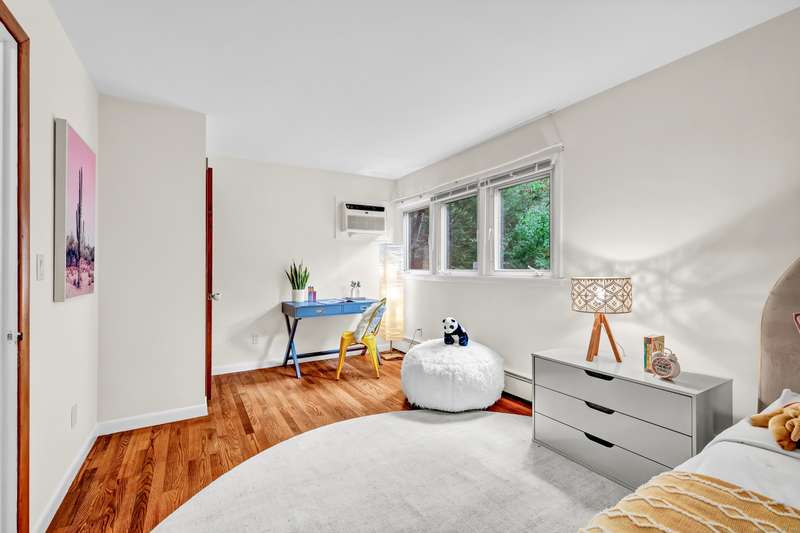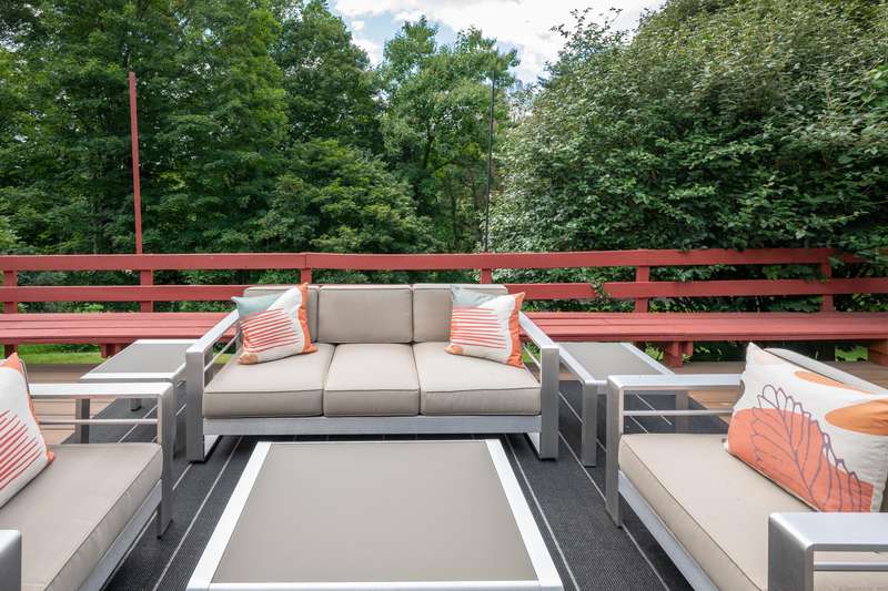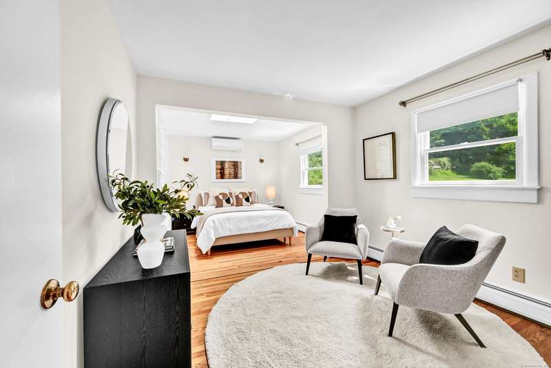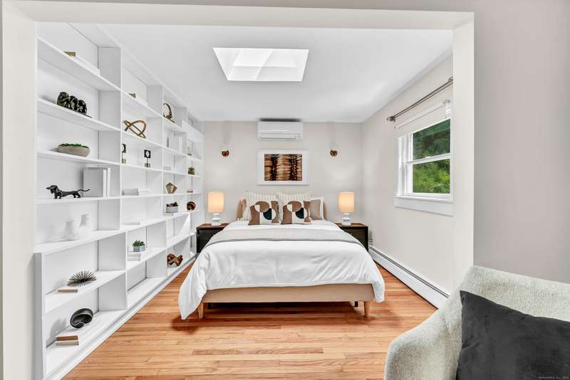 Tucked away on a private lot surrounded by woods with views of nature all around, you'll find this lovely Mid-Century 3 bedroom Ranch style home. Charming features throughout with modern touches, including hardwood flooring and a cozy kitchen with picture window and breakfast/dining area with sliders to the back decking. The expansive living room offers a wall of windows and sliders to the sunny and private wrap-around decking. There are three bedrooms and two full bathrooms, one en-suite that steps out to the back yard as well. The lower level has tons of potential with multiple storage areas and a finished laundry room with convenient sink. Outside you'll find a carport, newer driveway with lots of room for guests and a large shed with space for chickens. The grassy, level yard has complete privacy with plenty of space for playing, a pool or gardening. Numerous recent improvements totaling over $100,000, including a newer septic system, driveway, AC units, sliding doors, refinished h