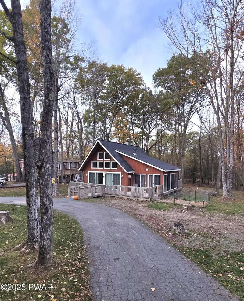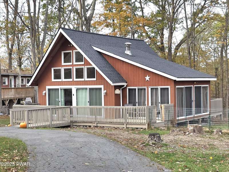 Charming 2-bedroom, 1.5-bath Chalet in Paupackan Lake Estates!!!!!!This property has a greenbelt with a total of 1.21 acres of peaceful country land, offering the perfect blend of natural beauty and recreational living. You will find an abundance of natural light in the home, along with a front and rear porch to enjoy your morning coffee. The loft would make a great home office!Outside, you will find a well-maintained yard along with a storage shed and a 20x20 enclosed carport. Paupackan Lake is a non-powerboat lake which ensures tranquil waters peaceful for fishing, kayaking, and enjoying nature's serenity. The basketball court, beach and playground will keep kids and kids are heart occupied. You will also find a community pavilion perfect for entertaining.Some new upgrades include:*New flooring in the kitchen, primary bedroom & living room.*Paint throughout the home*New baseboard electric heaters & thermostats in dining room, kitchen & primary bedroom.*Kitchen & Bathroom upgrades*New Gutters