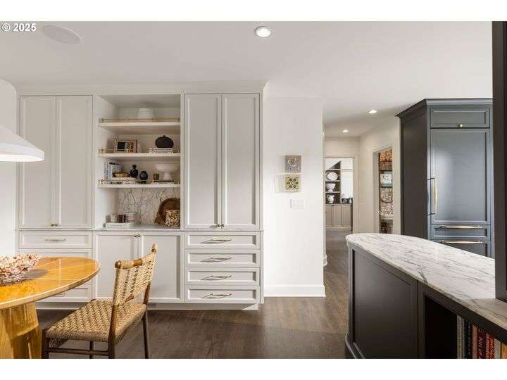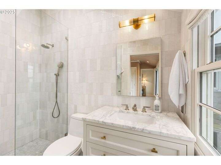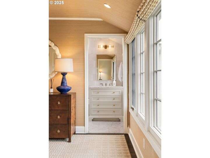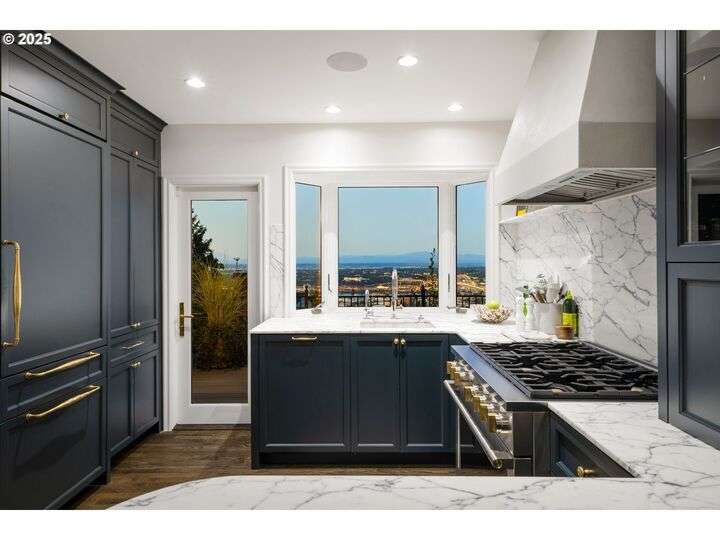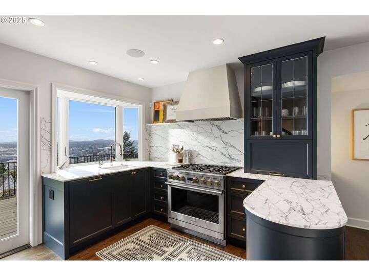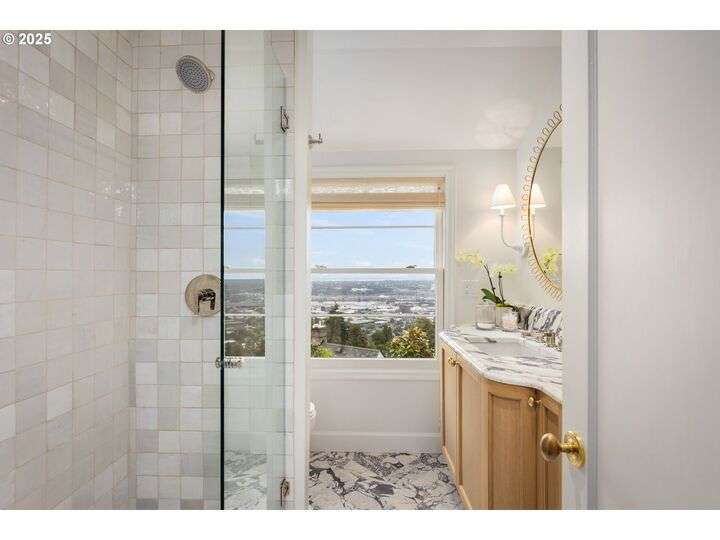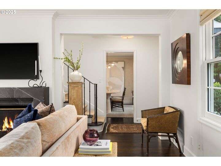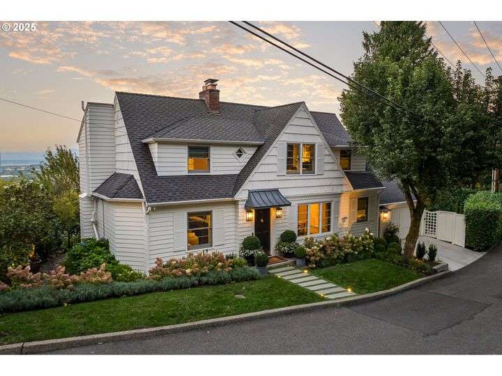 Experience timeless elegance reimagined. Perched in Portland’s coveted Kings Heights, this 1939 traditional has been meticulously restored by Maison Inc. to the highest modern design standards while fulfilling the owners mission in honoring its original character. Sweeping city vistas frame Mt. St. Helens and Mt. Adams, setting the stage for refined living. Every detail has been considered: all-new plumbing, electrical, and Lutron-controlled lighting; custom cabinetry; and hand-selected finishes of the finest quality. The chef’s kitchen showcases slab Calcutta marble, bespoke cabinetry, and a charming built-in dining nook. Venetian plaster walls in the formal dining room, a marble fireplace surround, and custom millwork lend warmth and sophistication. Thoughtfully reimagined for today’s lifestyle, the living room opens to an expansive cedar deck with iron railing crafted to mirror the original design. Landscaped grounds feature smart irrigation, exterior lighting, and a gas fire pit line, creating an inviting outdoor retreat. A true testament to design and craftsmanship, this home blends classic tradition with modern luxury in one of Portland’s most desirable neighborhoods. [Home Energy Score = 2. HES Report at https://rpt.greenbuildingregistry.com/hes/OR10199223]