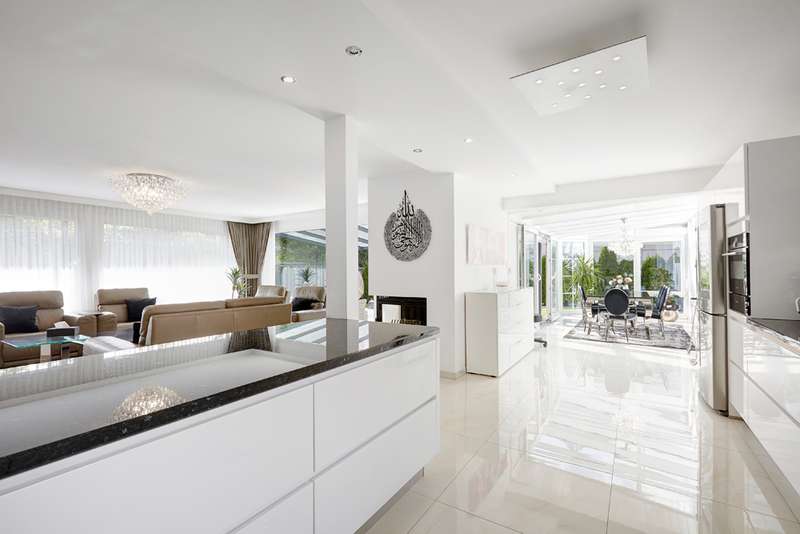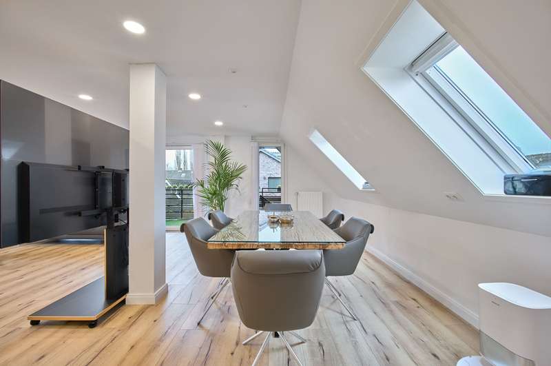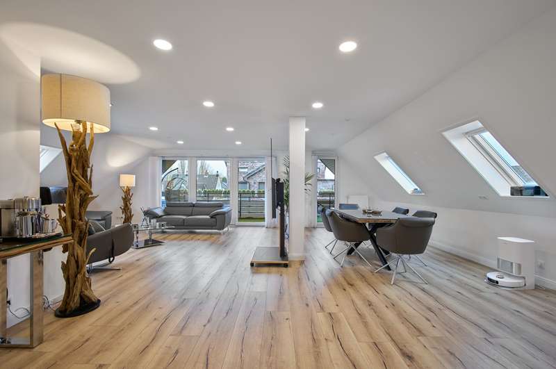This attractive two-family house was built in 1972 on a plot of approx. 621 m² as a prefabricated house with prefabricated concrete elements. With approx. 241 m² of living space and approx. 120 m² of usable space spread over 3 levels, the property offers you plenty of space for different uses. Whether you as a family need a separate area for work, older children, hobbies or guests - you can fulfill a wide range of living requirements here! The house is currently divided into two residential units, but can easily be merged back into one self-contained residential unit. The first floor apartment is bright and modern and welcomes you with a spacious living/dining area. The glass-fronted fireplace makes for cozy hours. The window elements flood this area with plenty of light and provide a view of the mature garden. The adjoining conservatory also gives you access to the south-west-facing, covered terrace. Who wouldn't want to spend the next summer here? The high-quality, modern and open kitchen from 2020 offers plenty of storage space and quick workflows. In addition to a hallway and a full bathroom with shower and freestanding bathtub, there are two further rooms on the first floor. These can be used individually as bedrooms, guest rooms or studies. The upper floor apartment was completely modernized in 2024. Here you will find a spacious living/dining area with access to two loggias, a bedroom, a shower room with WC and another room that is used as a dressing room. The two-family house has a full basement. In the basement, you will find a utility room, a bathroom with shower, a kitchen and two further rooms that have been converted into living areas. The basement also has a separate outside entrance. This offer is rounded off by four parking spaces. This very attractive property is looking forward to a new owner in summer/autumn 2025 - come and see it for yourself during a personal viewing!