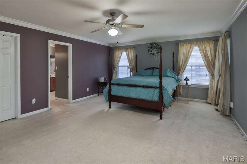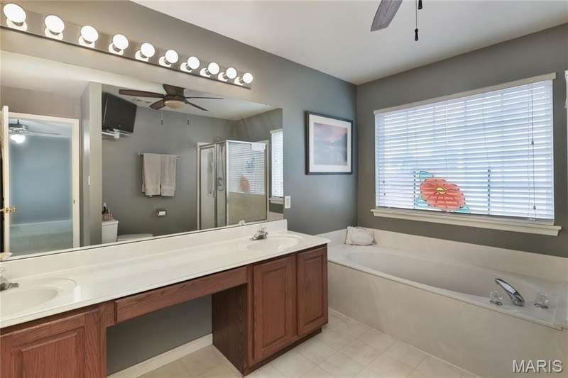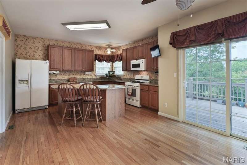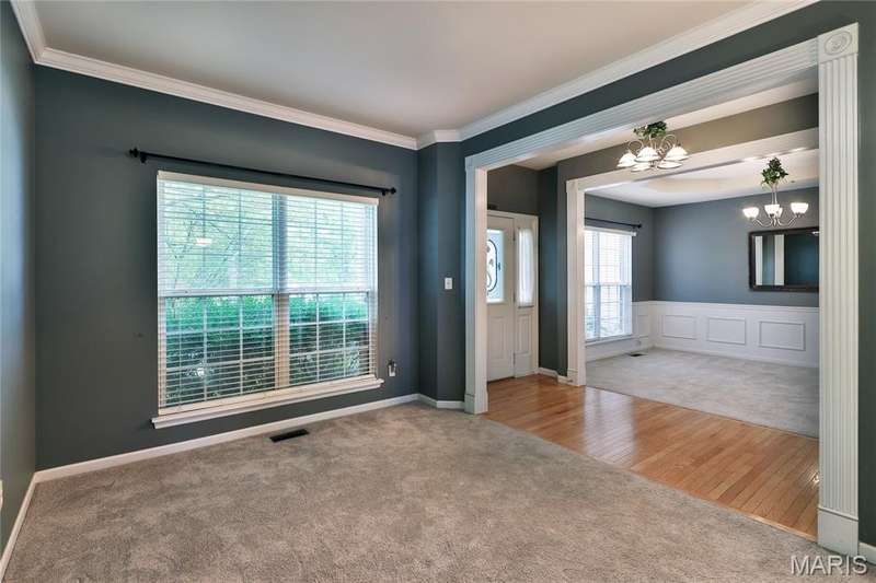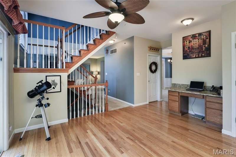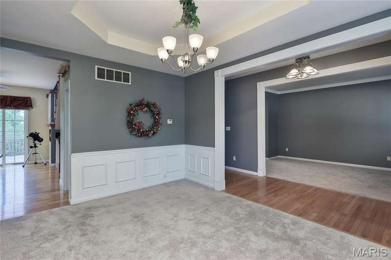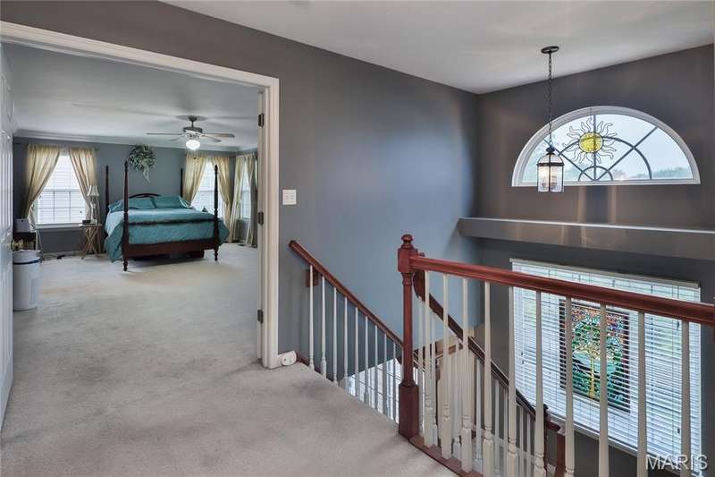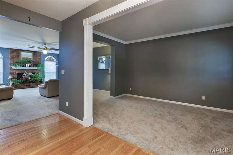 This popular floor plan is designed to welcome both large families and those who love to entertain. The inviting entry foyer is flanked by a formal dining room (9ft. main floor ceilings)—ideal for hosting large gatherings—and a versatile sitting room-enjoyed as a playroom, music room, or home office. The modified layout features an expanded family room that comfortably fits a massive sectional, complete with a wood-burning fireplace and abundant natural light. Rear spindled staircase leads to the breakfast room and kitchen, featuring a butterfly island, granite counters, planning desk and a charming corner window—overlooking the yard. Adjacent to the kitchen, you’ll find a spacious main-floor laundry and direct access to the 3 car attached garage. Love the outdoors? Step out onto the oversized deck—perfect for entertaining or relaxing—and enjoy the level, fully fenced backyard, ideal for kids and pets alike. Upstairs, begin at the landing with a massive primary suite offering a private luxury bath and a true walk-in closet. Three additional bedrooms feature large closets, plenty of natural light, and ceiling fans, sharing a full bath. The lower-level recreation room is perfect for family movie nights! Peace of mind comes with the HVAC (2020) and 2024 updates: roof, siding, gutters, and garage door. Plus, close proximity to all the schools, Fort Zumwalt Park, Westhoff Park, Alligator's Creek Aquatic Center, Car Shield Field (O'Fallon Hoots), and Heritage and Freedom Festival.