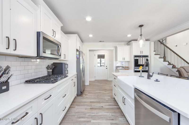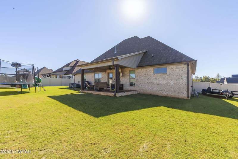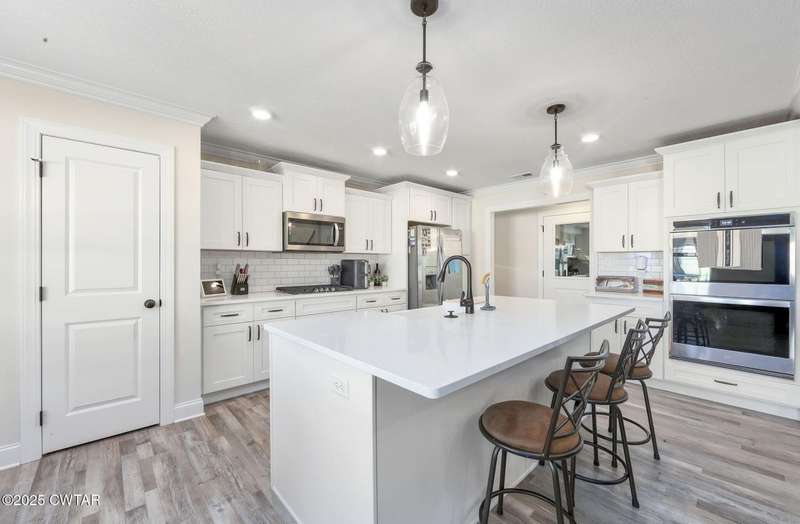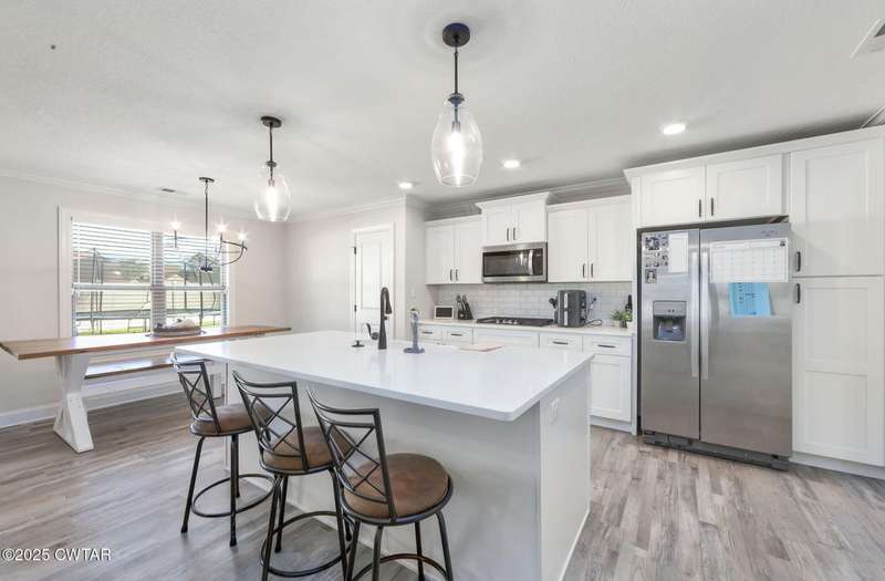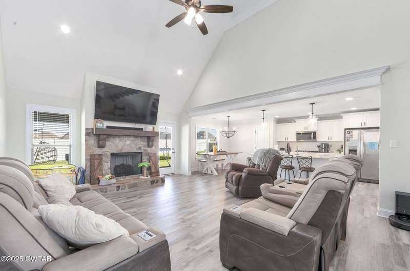 Beautiful 5 Bedroom Home in Sought-After Medina Subdivision. Welcome home to this stunning 5-bedroom 3-bath home located in one of Medina's most desirable neighborhoods. Built just 2 years ago, this home offers the perfect blend of modern comfort and timeless style. Step inside to find gorgeous LVP flooring throughout the main level and cozy carpet upstairs. The spacious living room features vaulted ceilings and a beautiful stone fireplace, creating a warm and inviting atmosphere. The formal dining room with elegant wainscoting is perfect for entertaining. The kitchen is a dream ? featuring stainless steel appliances including double ovens and a gas cooktop, tons of cabinet space (ideal for a coffee bar), a pantry, and a charming farmhouse sink. The eat-in area overlooks the backyard, making it a bright and cheerful space for everyday meals. The primary suite is a true retreat with tray ceilings, his and her closets, and a luxurious bath complete with a soaking tub, separate tile shower, and dual vanities. Two additional bedrooms and two full baths are located on the main level, while upstairs offers two more bedrooms, a large bonus room, and another full bathroom ? plenty of space for family or guests. Additional features include a large laundry room, oversized garage with ample storage, and walkout attic. Outside, enjoy a covered patio overlooking the fenced backyard ? perfect for relaxing or entertaining. Smart and efficient, this home includes a tankless water heater, two HVAC units, Amazon smart thermostats, WiFi-connected garage door openers, and an ADT security system with cameras, sensors, and a video doorbell. A current termite contract adds even more peace of mind. This beautiful home truly has it all ? space, style, and smart features ? and is ready for its new owner to move right in.