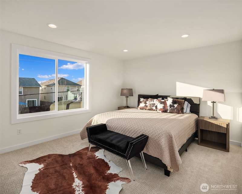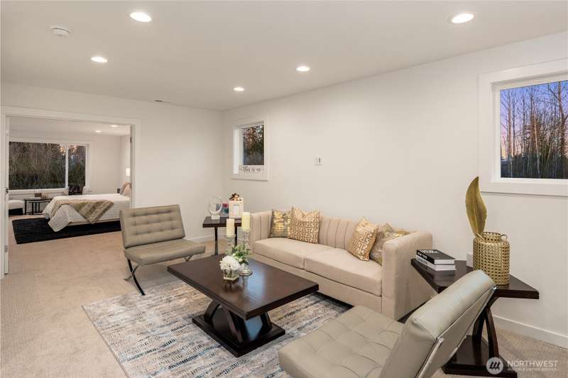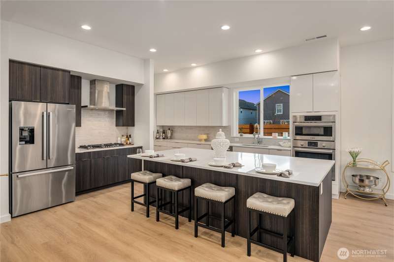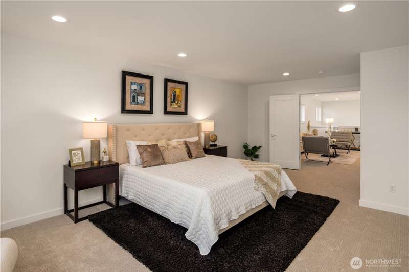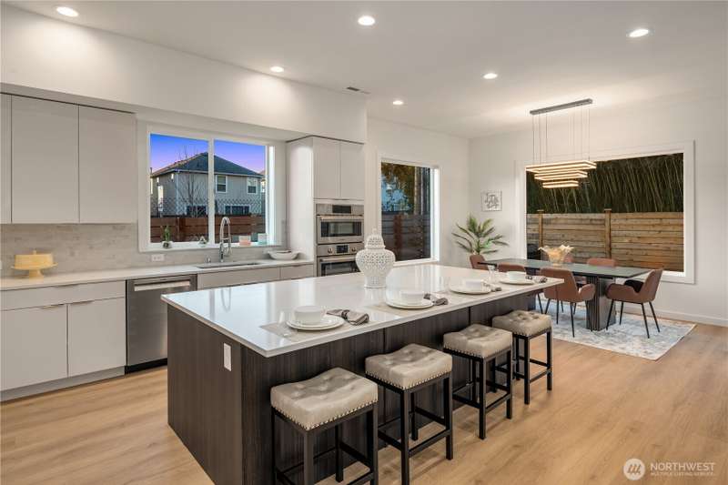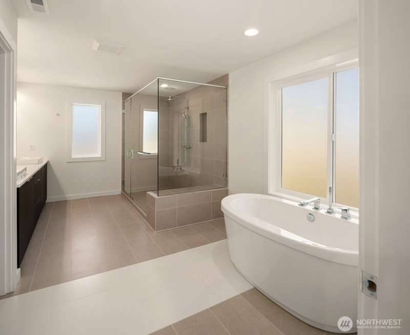New Homes By Datta Homes, easy commute to Bellevue and Seattle modern NW contemporary design, open layout with 10-ft ceilings and 8-ft doors on the main level, main-level office & bedroom w/ 3/4 bath. Entertain in style w/ a dream kitchen & island off spacious great room, 142 sq ft outdoor room for indoor-outdoor experience. High-end features abound: Bosch SS appliances (fridge included), 3cm Quartz counters, European cabinetry, and luxury fixtures (Grohe, Kohler, DVX, Toto) . primary suite comes with a 5-star bath, spacious walk-in closet. e -charging. Backs to protected green belt.