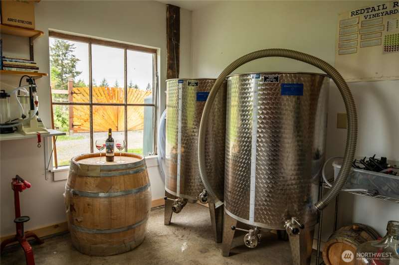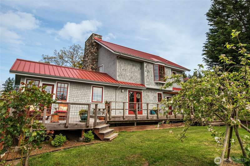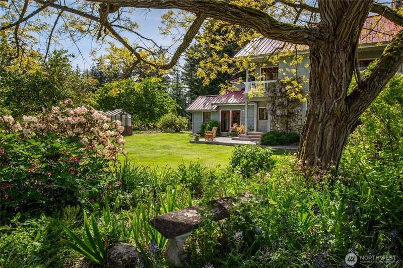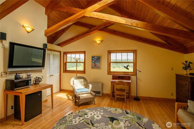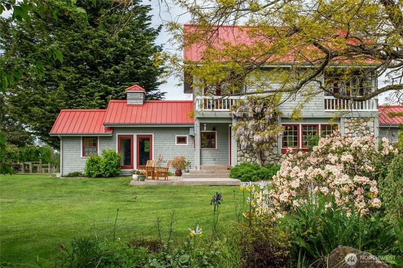Redtail Ridge: Secluded 20-acre estate with multiple residences, sunny pastures, forests, ponds, breathtaking sunsets, and territorial views in all directions, centrally located on Lopez Island. The main house has been extensively updated w/a chef’s kitchen (custom cabinetry, walk-in pantry, high-end appliances), on-demand hot water, mini-split HVAC, metal roof, plus a catchment-irrigated vegetable & flower garden, and a greenhouse, chicken coop/potting shed within the fenced yard. The detached guesthouse and apartment over the garage/shop will generously house your guests. Two vintage timber-framed barns provide space for farm equipment, horses, hay, and vehicles, as well as a fully-equipped winery/cidery for the vineyard and orchard.