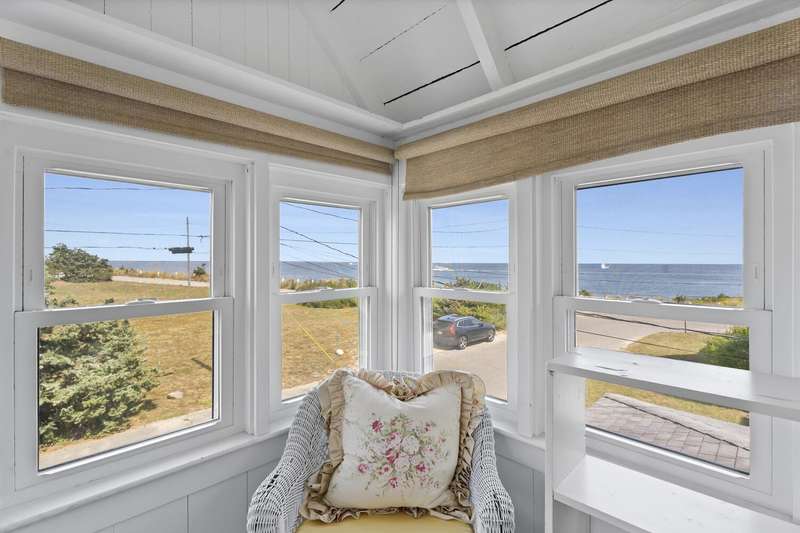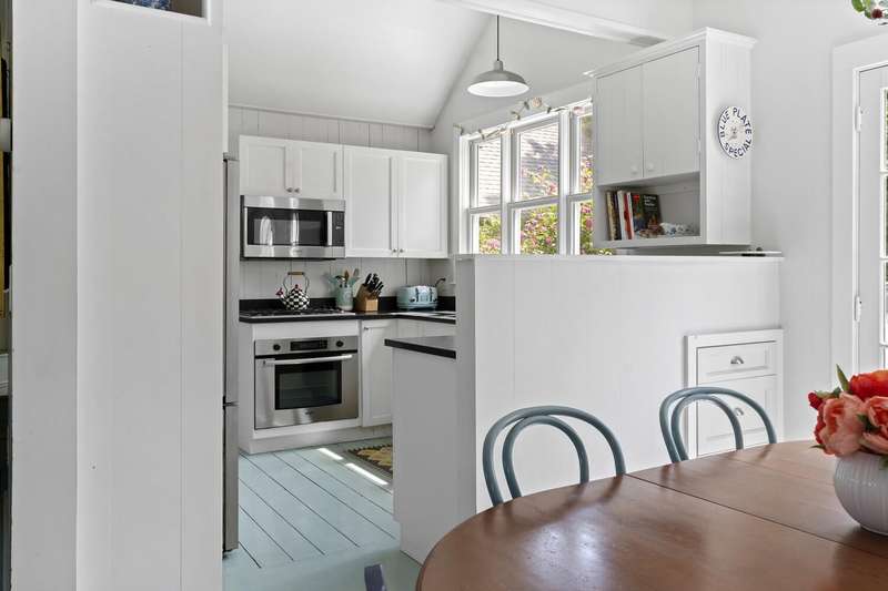 Enjoy sweeping ocean views from this beautifully updated East Chop Victorian, complete with a timeless guest cottage. Thoughtfully renovated in 2010, the main residence seamlessly blends historic character with modern comfort. The kitchen and bathrooms have been stylishly updated while preserving the home's original charm and character. The guest cottage, tucked to the rear of the property, affords a private retreat or additional space for family and friends. Nestled in the heart of East Chop-a close-knit, sought-after community-this property is just a short distance from pristine beaches, the active harbor front, and vibrant downtown Oak Bluffs. A happy home, ready to welcome new memories and lasting moments.