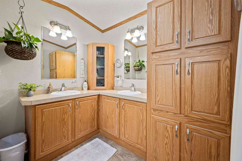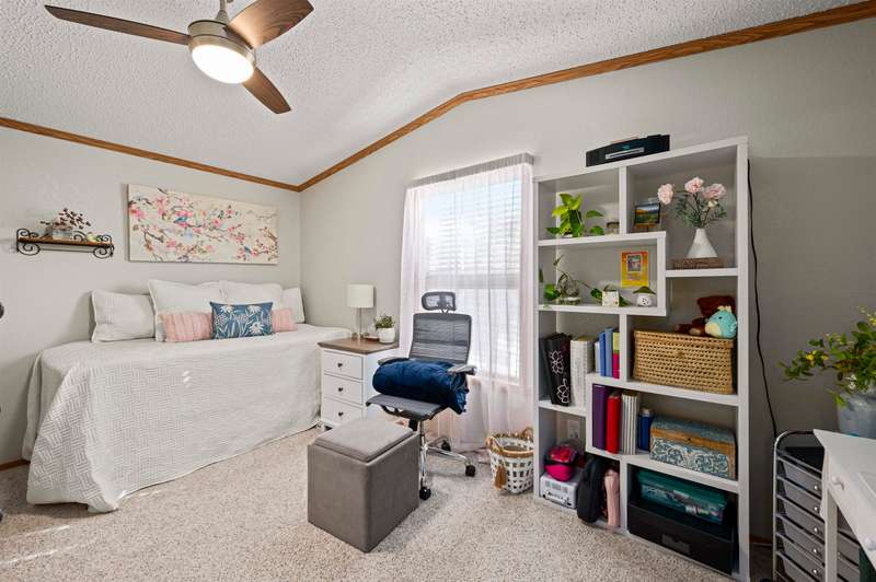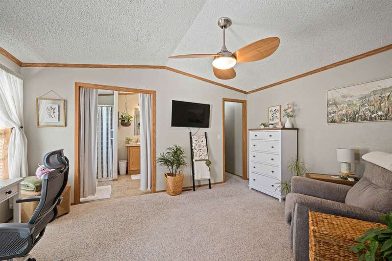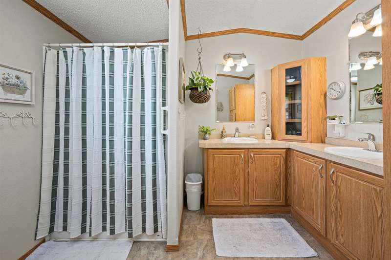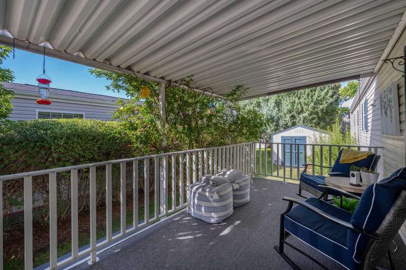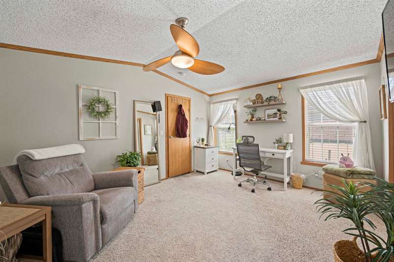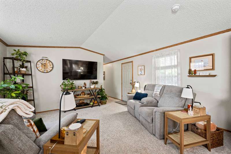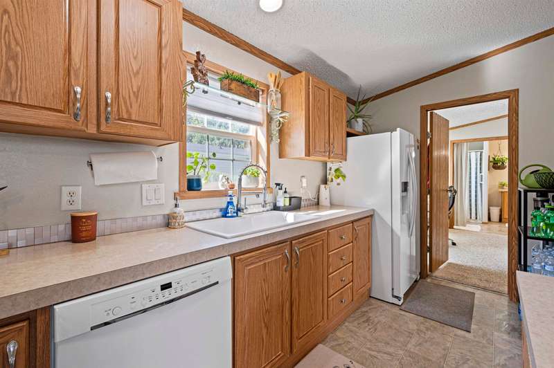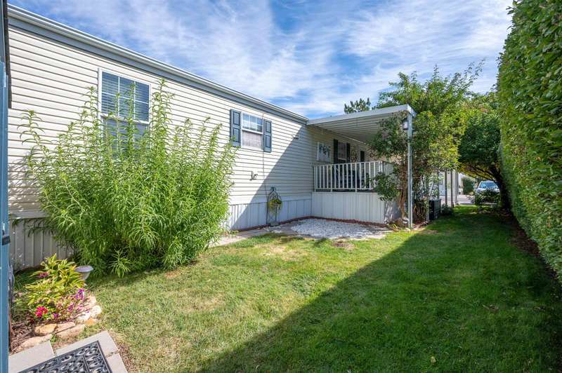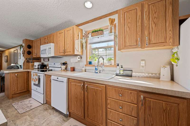 Welcome home! This 3-bedroom, 2-bathroom mobile home offers comfort, functionality, and plenty of natural light. The open-concept kitchen features abundant cabinet space, a farmhouse sink, an electric range/oven, microwave, refrigerator, and disposal—all included, with newer appliances as well. The home has also been freshly painted and includes newer heating and air conditioning, creating a move-in ready space. The large master suite has a generous walk-in closet and a spacious master bathroom. Step outside to enjoy a private patio with shades and new deck carpet—perfect for relaxing or entertaining. Additional features include manual sprinklers set every other day and park-maintained tree trimming, giving you more time to enjoy your home. A large shed provides extra storage. The subdivision offers expansive green space, a park, a community garden, and rentable RV space. Don’t miss this opportunity—schedule your showing today!
