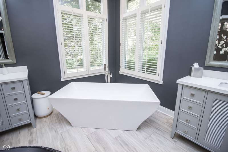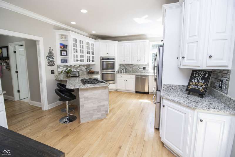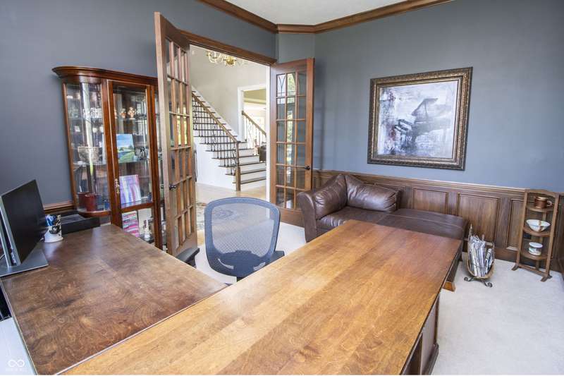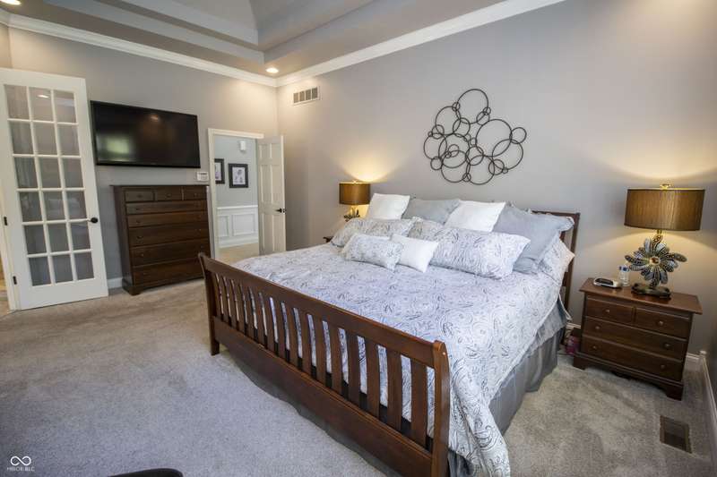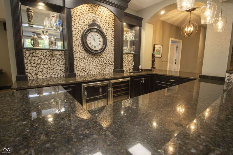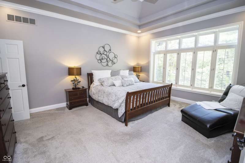 Step into luxury with this stunning 4 Bedroom, 4 Full/1 Half Bathroom all-brick home located at the end of a quiet cul-de-sac, surrounded by mature trees. This house is an entertainer's dream. The main level features a separate dining room, sunroom, and a spacious great room equipped with a stately gas fireplace. Enjoy outdoor gatherings on the back deck, or head to the basement, which includes a fully equipped wet bar, recreation room, sitting area, dual-sided gas fireplace, and a wine cellar. Well maintained, this home boasts a roof that's only 5 years old, dual HVAC systems less than 10 years old, with the main level HVAC being just 2 years old. Don't miss the luxurious main-level primary bedroom suite, complete with separate vanities, a soaker tub, and a spa shower that will make you feel like you're in a resort. All bedrooms feature walk-in closets, while the primary bedroom is exceptionally large. Experience quality character throughout the home, from the stunning painted exterior brick to exquisite interior details such as granite countertops, board and batten walls, plantation shutters, crown molding, and vaulted and tray ceilings. You'll also find built-in shelves, wrought iron spindles, and wide staircases to the upstairs and basement. Natural light floods the home with plenty of windows, including daylight windows in the basement and tall wood casement windows. Upstairs, two of the bedrooms are connected by a Jack and Jill bathroom, and the fourth bedroom has its own private bathroom. Storage is abundant with a 3-car side-load garage and a full walk-in attic accessible from the upstairs room.