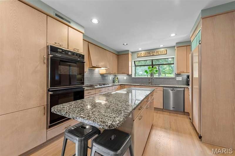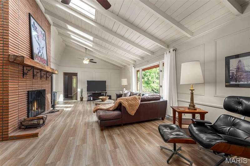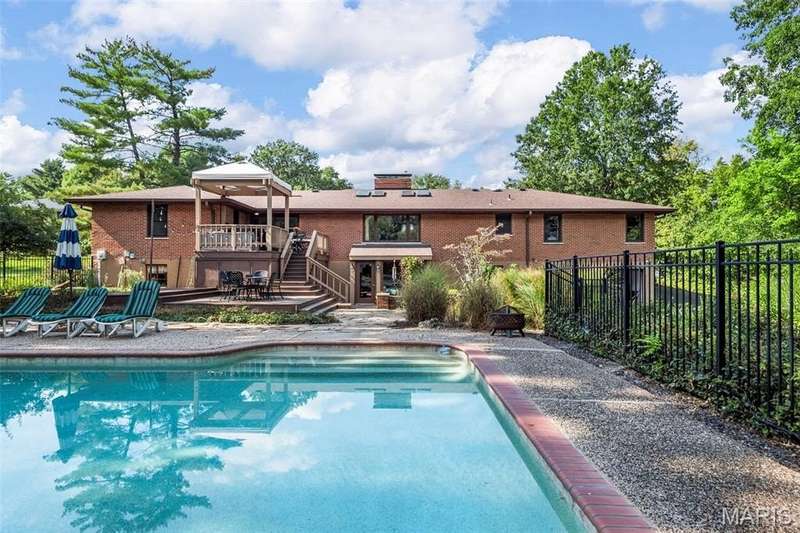1.14 Acres in Ladue Schools | 4,134 Sq. Ft. Ranch with Pool & In-Laws Quarters The home features 4 bedrooms, 4 baths, a pool, generous indoor/outdoor entertaining areas, and a walkout lower level with full in-laws quarters. The main level includes a formal dining room, living room, and a family room with a see-through fireplace and walk-behind wet bar. The eat-in kitchen opens to a partially covered deck overlooking the pool. The primary suite boasts a spa-like ensuite with a separate Jacuzzi tub, multi-head steam and massaging shower, heated floors and washer/dryer. Three additional bedrooms and 2 baths complete the main level. The walkout lower level offers exceptional living space with a recreation room, second family room with wet bar, and private in-laws quarters featuring a kitchen, laundry, full bath and space for a possible guest suite. You’ll also find three large storage areas and a 4-car tandem garage. Enjoy resort-style outdoor living with a pool, patio, and expansive grounds—perfect for entertaining or relaxing at home.