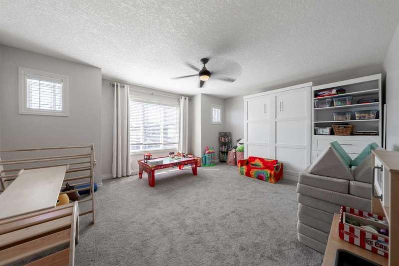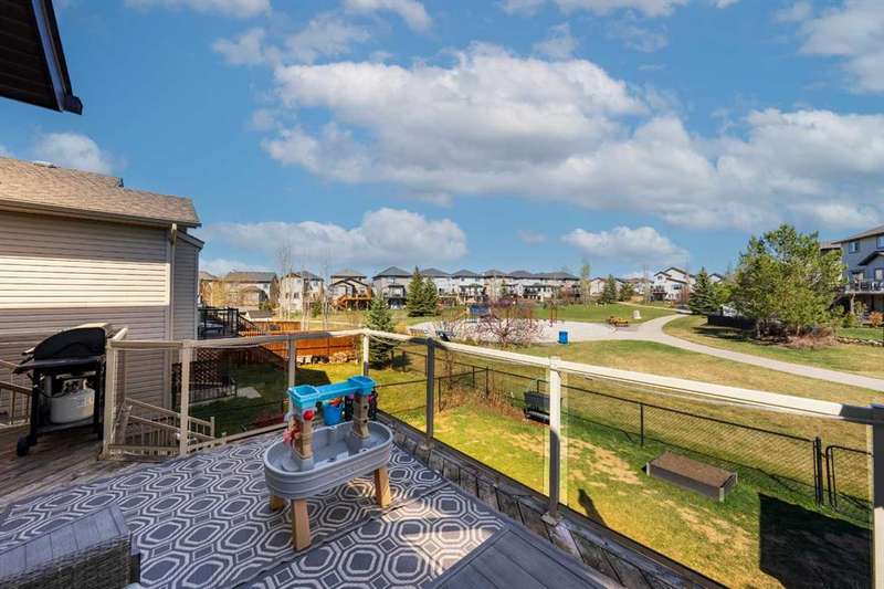***WELCOME HOME*** This Beautifully UPGRADED & Fully DEVELOPED family home is Nestled in the PRIME LOCATION on a quiet street, backing directly onto the GREENSPACE & PARK! Boasting nearly 2900ft of living space across 3 levels, this well-appointed home is designed with comfort and functionality in mind. The main level welcomes you with an open-concept layout highlighted by Luxury VINYL PLANK flooring, expansive WINDOWS & 9' ceilings - creating a BRIGHT and AIRY atmosphere. The CHEF'S Kitchen, featuring UPGRADED Cabinetry & Stainless Steel Appliances, Stone Countertops, large Central Island with eat-up bar and corner pantry, opens to the Dining Area and Living Room with cozy GAS fireplace - all showcasing the beautiful GREENSPACE & PARK VIEWS. A private front den/office (or 5th bedroom) and 2pc powder room complete this level. Upstairs, the PRIVATE master retreat offers a large WALK-IN closet & 5pc ENSUITE complete with double vanity, walk-in shower & oversized CORNER TUB. A huge BONUS/THEATRE ROOM, 2 additional bedrooms, another full bath & laundry room round off this level. The Fully DEVELOPED lower level features a large family room with another GAS FIREPLACE, WET BAR/Kitchenette, 4th bedroom, full bath & plenty of STORAGE SPACE! Ideal for movie nights, a growing family or having friends over for the big game, this level provides all the additional living space you'll need! Step outside into the fully fenced & landscaped backyard with direct access to the PARK, PLAYGROUND and WALKING PATHS right outside your gate! The large RAISED DECK is the perfect spot to enjoy the peaceful VIEWS while relaxing with your favorite drink or BBQing & entertaining friends & family! This lovely home features many recent UPGRADES including A/C, HW tank, some newer appliances & more! Prairie Springs is a VIBRANT Family Friendly Community, surrounded by great Schools, Walking Paths & Lush Greenspaces, YEAR-ROUND Outdoor Recreation & MORE, providing a prominent sense of community, livability & countless AMENITIES within walking distance! Simply MOVE IN & start making new memories with your Family in this fantastic TURN-KEY Home!