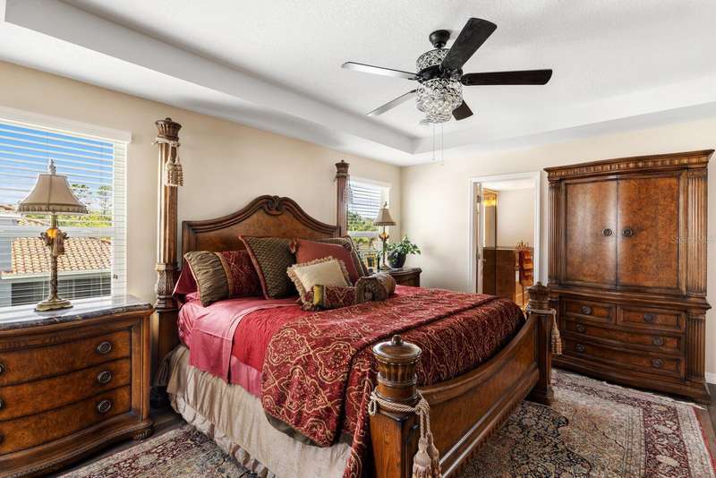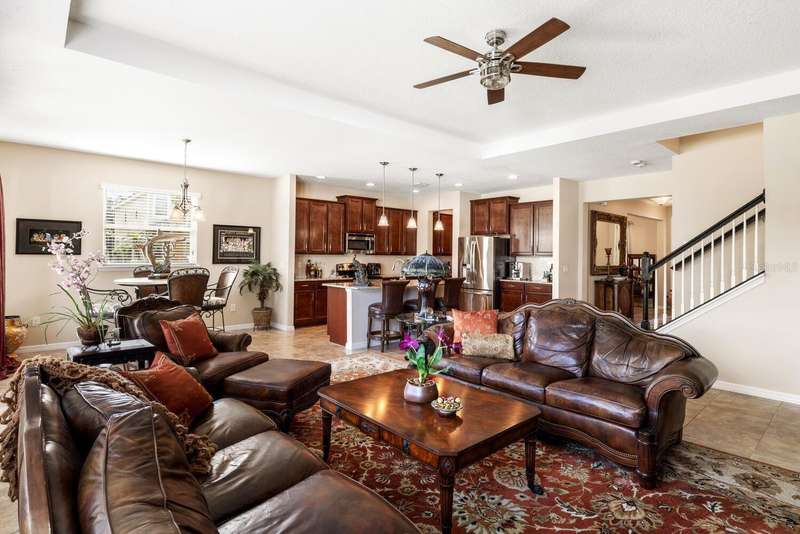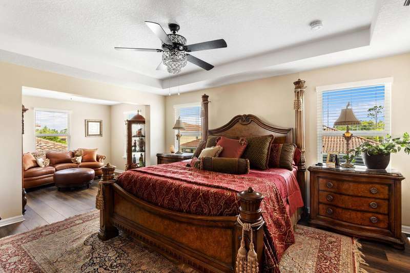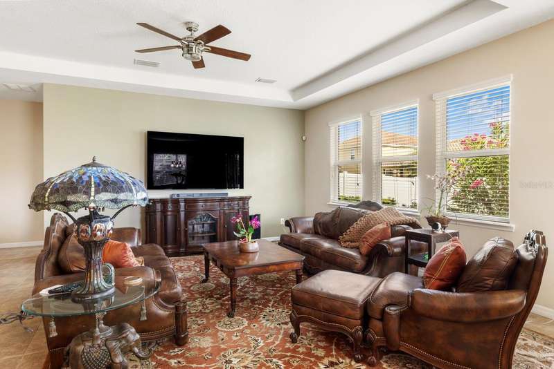 Beautifully Appointed Sarasota Home in a Prime Gated Community Situated on a desirable corner lot within the gated community of The Soleil, this expansive two-story residence offers over 3,000 square feet of beautifully designed living space, featuring 4 bedrooms, 3 full bathrooms, and a versatile bonus loft. The charming stone elevation and brick paver front porch set the tone for the elegant interiors that follow. A grand foyer opens to a formal dining room enhanced by soaring ceilings, tile flooring, and generous picture windows that fill the space with natural light. The heart of the home is the spacious family room, perfectly connected to a chef’s kitchen complete with granite countertops, stainless steel appliances, subway tile backsplash, solid wood cabinetry, a butler’s prep area, and a massive walk-in pantry. A guest bedroom and full bath with granite vanity and large tiled walk-in shower are conveniently located on the main floor. Upstairs, a generous loft provides flexible living space for a game room or second family room. The luxurious primary suite features a double-door entry, private sitting area, tray ceilings, spa-like ensuite with dual vanities, soaking tub, walk-in shower, and a spacious walk-in closet with direct access to the laundry room. Two additional bedrooms and a full bath with dual sinks and tub/shower combo complete the upper level. Outside, enjoy the privacy of a fully fenced backyard with ample space to add a pool. Residents of The Soleil enjoy premium amenities including a community pool, dog park, fitness center, bocce court, and more. Ideally located just off University Boulevard with easy access to Highway 301, Sarasota Airport, and top-tier shopping and dining.