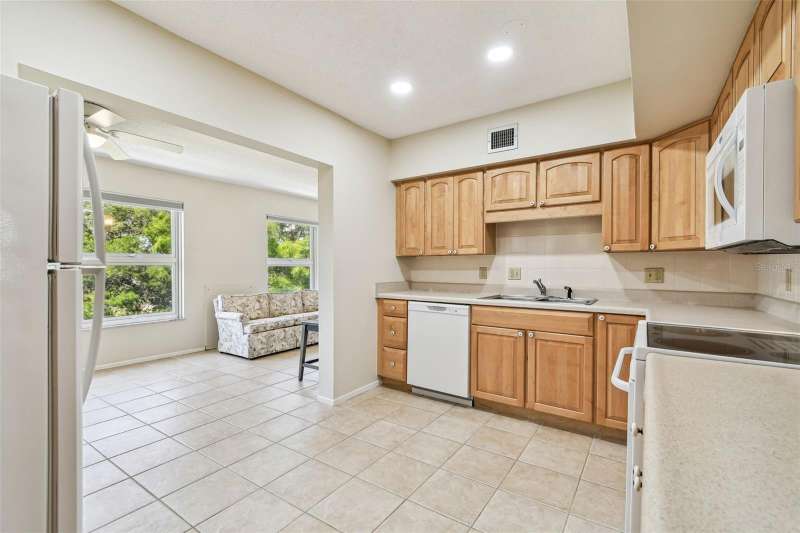 Motivated Sellers! Bring offers! Light, Bright, and Airy! Welcome to the vibrant lifestyle of On Top of the World! This affordable and spacious 2-bedroom, 2-bath condo (1,400 sq ft) offers stunning golf course views and peaceful greenspace from expansive picture windows in the main living area—views that never grow old. Wake up to breathtaking sunrise hues just east of your window and start each day feeling inspired. Step inside to find updated windows, fresh neutral paint, and beautiful blonde laminate wood and tile flooring throughout. The kitchen is equipped with rich maple cabinetry and modern white appliances. Both bathrooms feature updated vanities, and your private washer and dryer add everyday convenience. The 10' x 25' back bonus room is a true gem—overlooking lush oak trees and serene garden spaces, offering privacy and a peaceful retreat right at home. Located on the 3rd floor with easy access via the public elevator, this condo is part of Rila Renaissance #41—a solid, well-managed building that has passed its milestone inspection and completed its financial reserve study with no special assessments! Detailed reports available upon request. Monthly maintenance fee: $536.97 – a fantastic value with so much included! Leasing is allowed: minimum of 6 months and 1 week (furnished), or annual lease (unfurnished).Financing available with 35% down payment. Live the good life at On Top of the World – where the views are serene, the community is lively, and the lifestyle is unmatched!