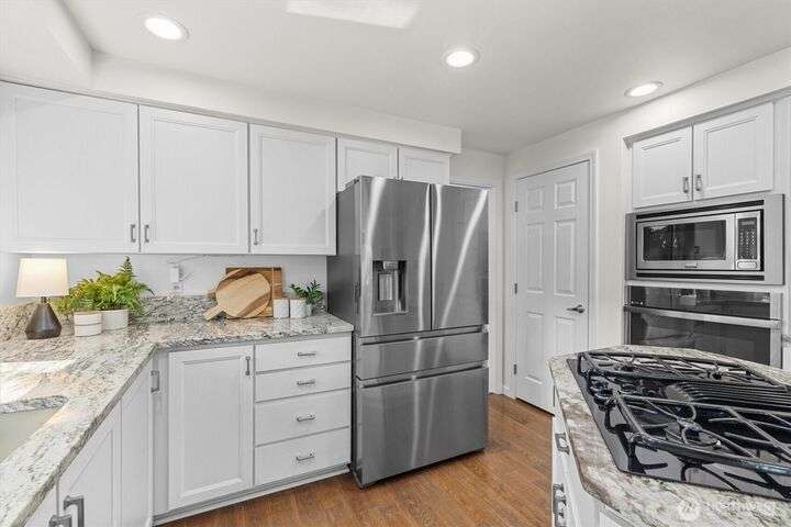 Welcome to Villages on the Plateau—where modern updates and effortless comfort. A new skylight fills the home with natural light, brightening freshly painted interiors, gleaming hardwoods, and an upgraded kitchen with marble counters and refined cabinetry. The spacious primary suite features a sunlit sitting area—ideal for a private office, cozy reading nook, or wellness retreat. Enjoy refreshed baths, new carpet, and year-round comfort with a heat pump and A/C. Thoughtful upgrades include exterior paint, enhanced insulation, and a French drain system for peace of mind. A fully fenced yard invites outdoor gatherings, while the 3-car garage offers abundant storage. Move-in ready!