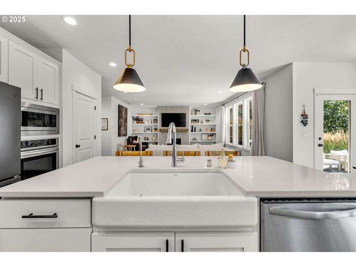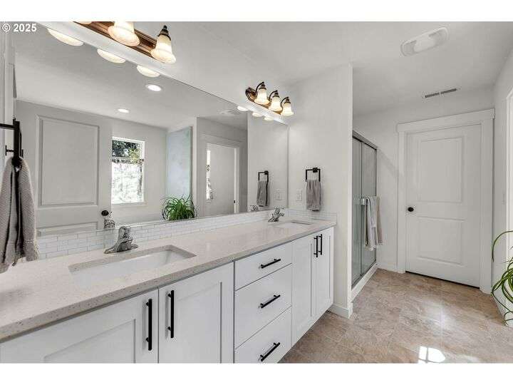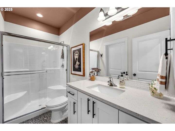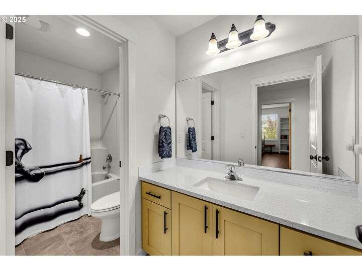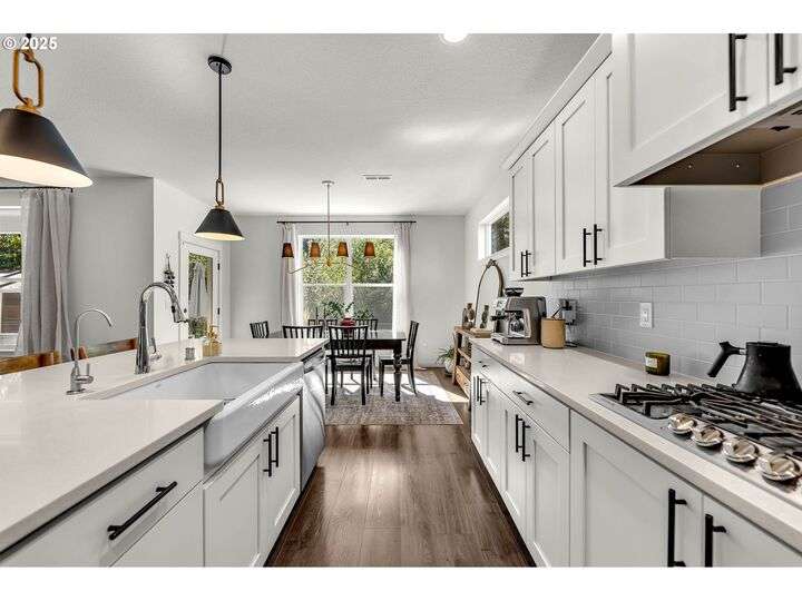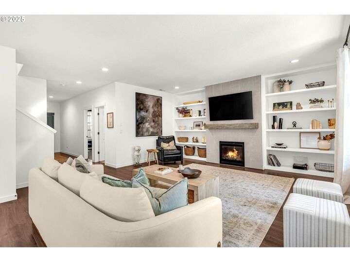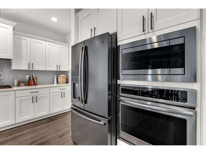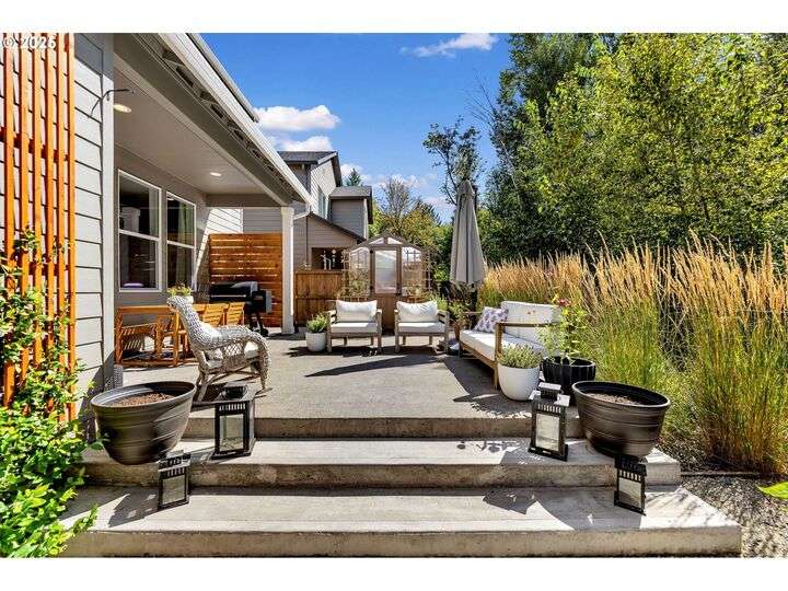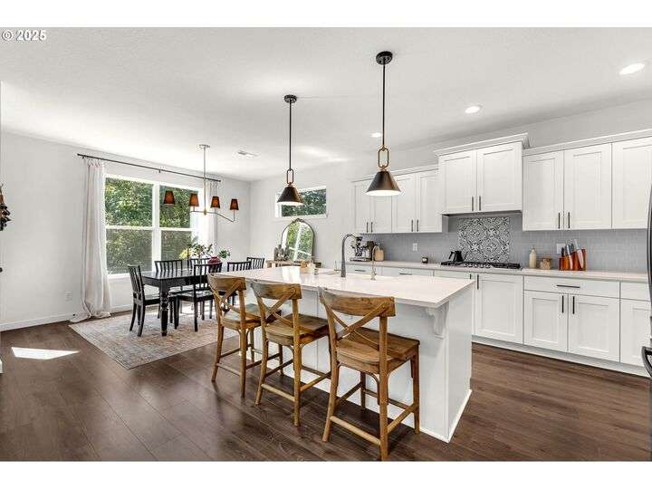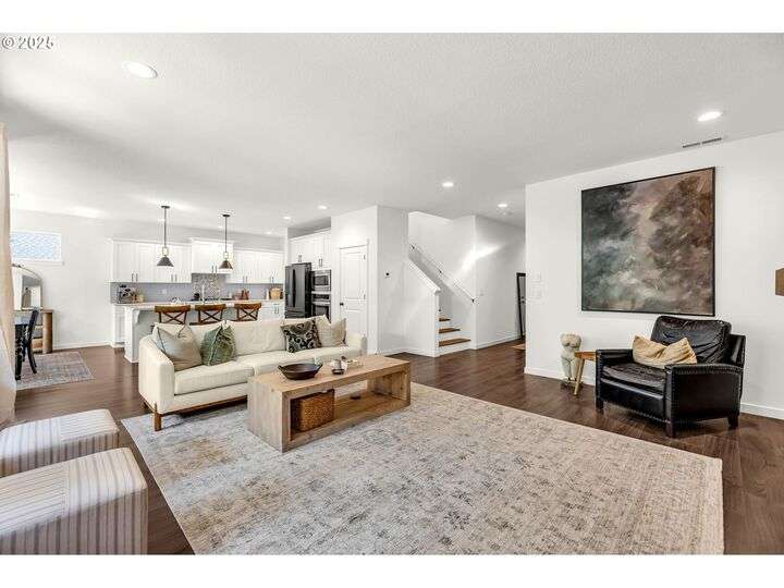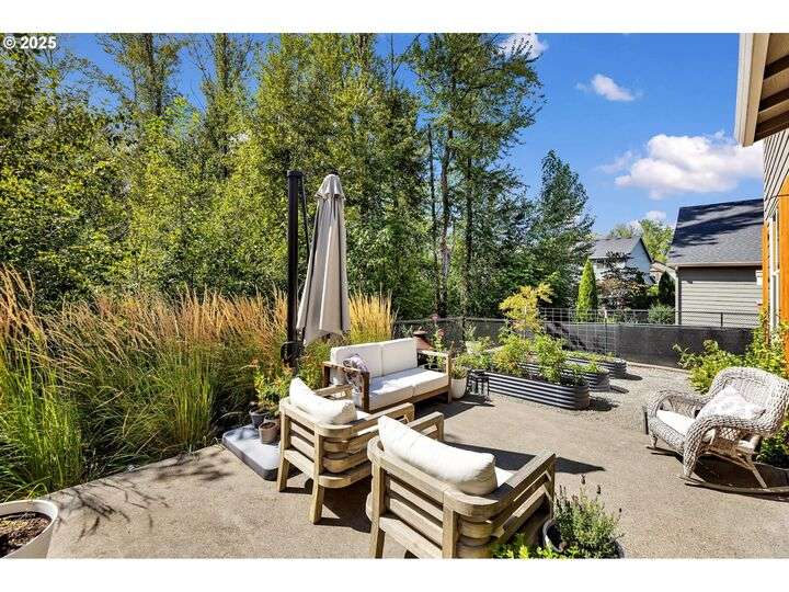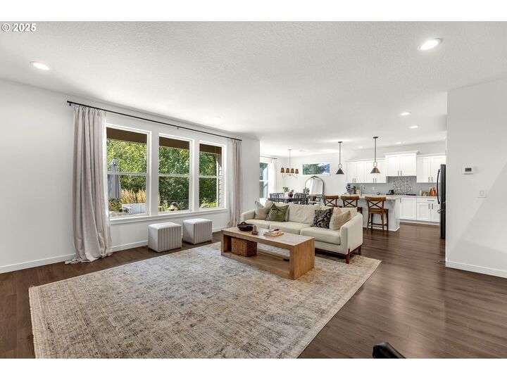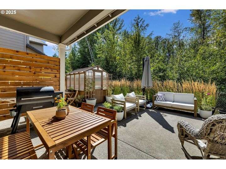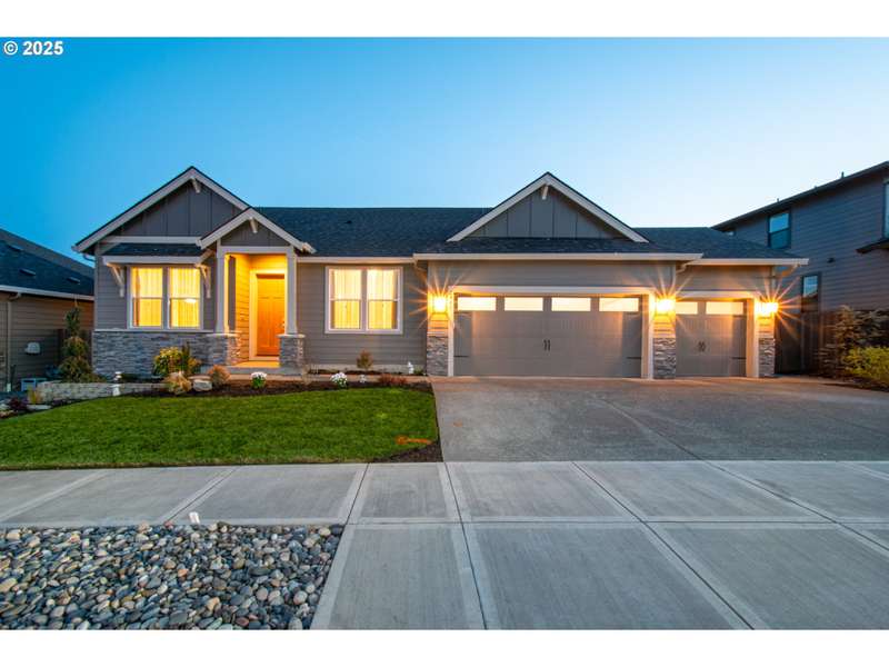 This exceptionally well-maintained Ridgefield home feels like new, featuring numerous upgrades and situated on a premium greenbelt lot. The open-concept design allows for ample natural light and provides views of the low-maintenance backyard oasis, which is enhanced by the bordering greenbelt for added beauty and privacy. The main floor includes a bedroom and a full bathroom, making it perfect for guests or as a home office. The great room features a gas fireplace, built-in shelving, and a modern kitchen equipped with all necessary amenities, including quartz counters, stainless steel appliances, 5 burner gas cooktop, reverse osmosis system and a pantry. The primary bedroom suite offers a spa-like bathroom and a walk-in closet. The bonus room has the potential to serve as a fifth bedroom. Most flooring in the home is wood laminate. Step outside to enjoy year-round outdoor living on a spacious covered patio, a fully fenced yard, and raised garden containers. This pristine home is sure to impress and is conveniently located to freeways, WSU Campus, Legacy Hospital, and top-rated Ridgefield Schools.