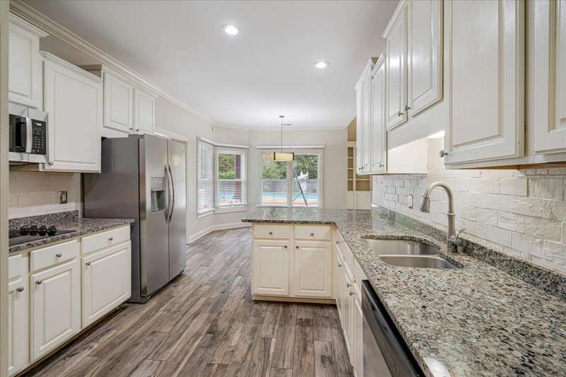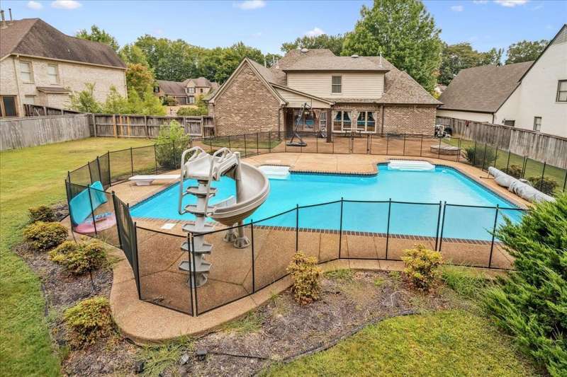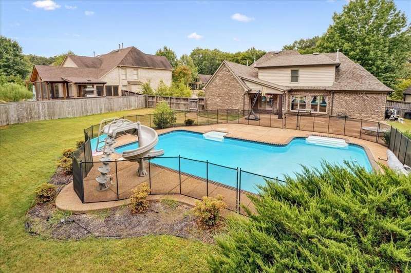 OPEN SATURDAY, 11/7/25 FROM 1-3 PM..This spacious residence features 4 beautifully appointed bedrooms?2 conveniently located on the main floor and 2 upstairs, perfect for families or guests. With 3 full baths, morning routines are a breeze!Step inside to discover an inviting hearth room, ideal for cozy evenings, and a formal dining room perfect for family gatherings. The expansive great room is designed for entertaining, providing a seamless flow for hosting friends and family. A versatile bonus room offers endless possibilities, whether you need a home office, playroom, or media space.Enjoy the elegance of ceramic tile that beautifully mimics hardwood flooring on the main level, while the upper level boasts brand new carpet for added comfort.Step outside to your own private oasis! The backyard features a stunning in-ground pool with a fun slide, surrounded by a large patio?perfect for summer barbecue or the firepit for making smores.