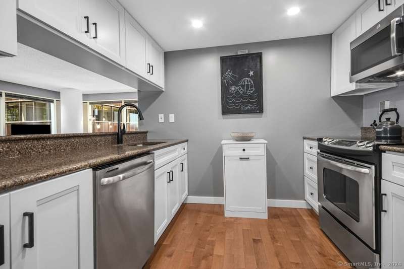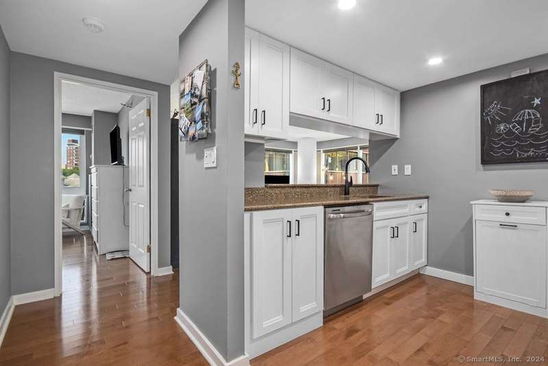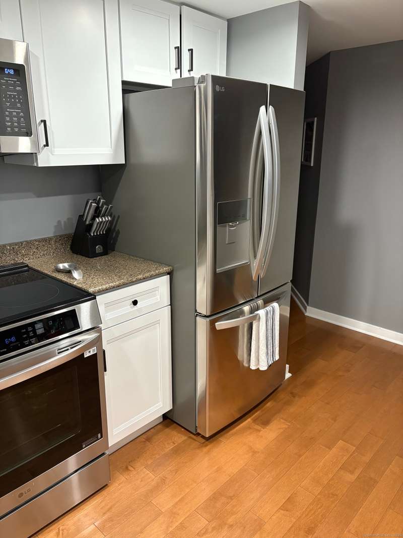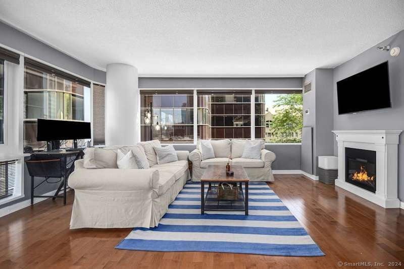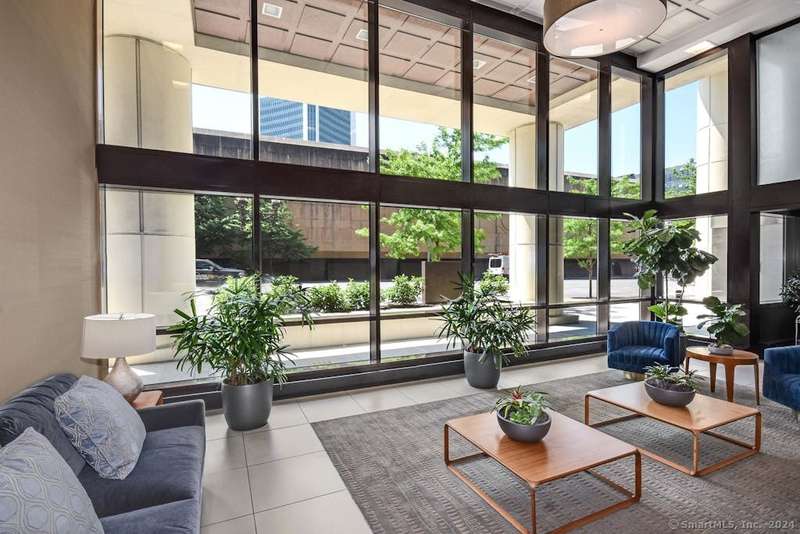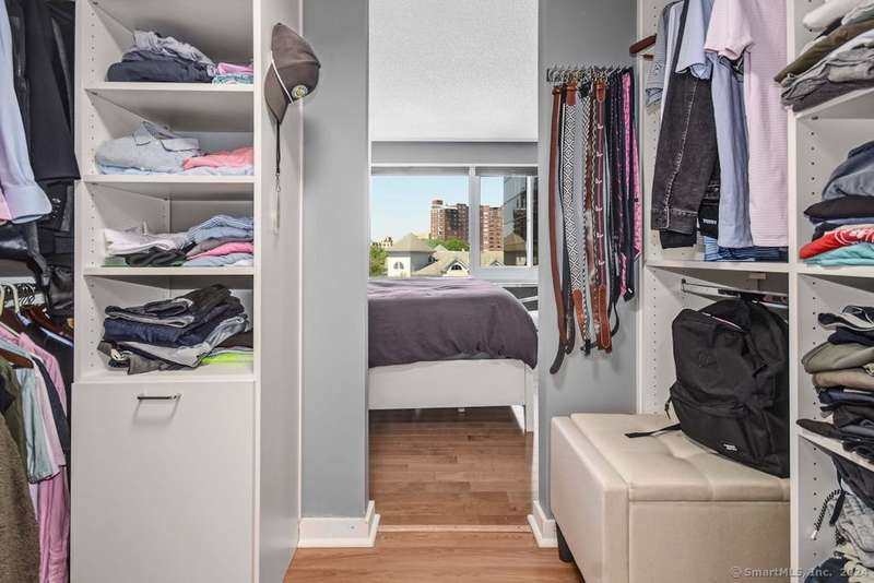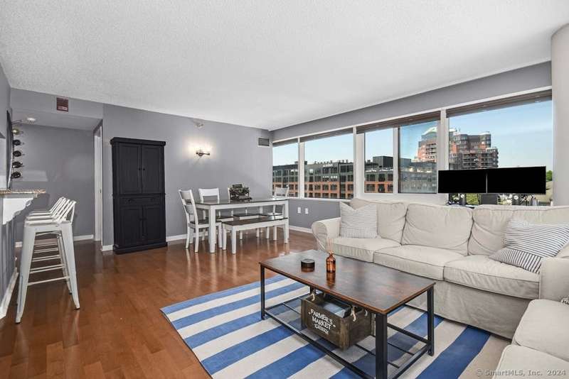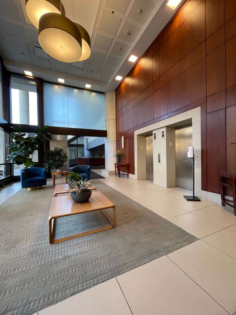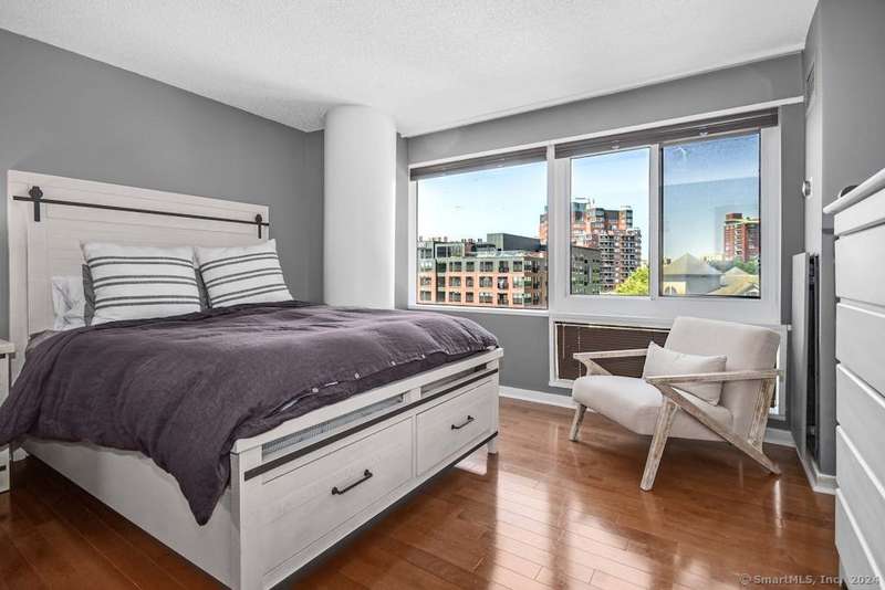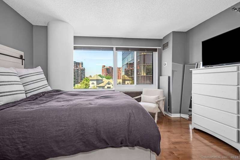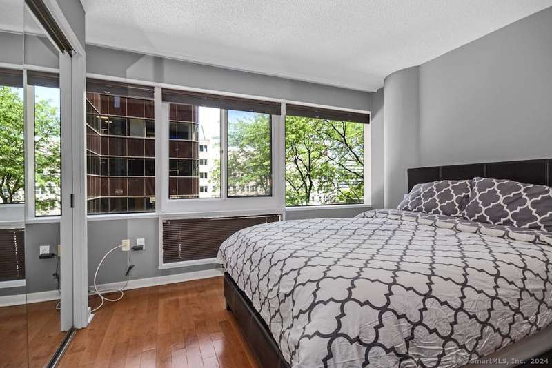 Experience more than just a home, embrace a lifestyle of luxury and convenience in one of Downtown Stamford's most sought after condominiums. This stylish 2 bedroom, 2 bathroom corner unit at The Biltmore offers move-in ready living with an open floor plan, engineered hardwood flooring throughout, and a contemporary kitchen featuring shaker cabinets, granite counters, New LG stainless steel appliances, and a breakfast bar that opens to the spacious living and dining area, perfect for entertaining. Retreat to the two bedrooms, each complemented by beautifully updated bathrooms and a custom walk-in closet. New HVAC 2025. The Biltmore is a full-service luxury hi-rise with a 24-hour concierge, state-of-the-art fitness center, community room, laundry, shuttle to the train, courtyard, and more. Pet-friendly with garage parking available ($118/month per car) and additional storage. Ideally located near highways, Metro North, UCONN, theaters, restaurants, coffee shops, the farmers market, and