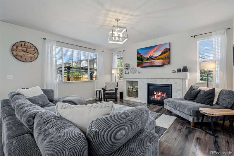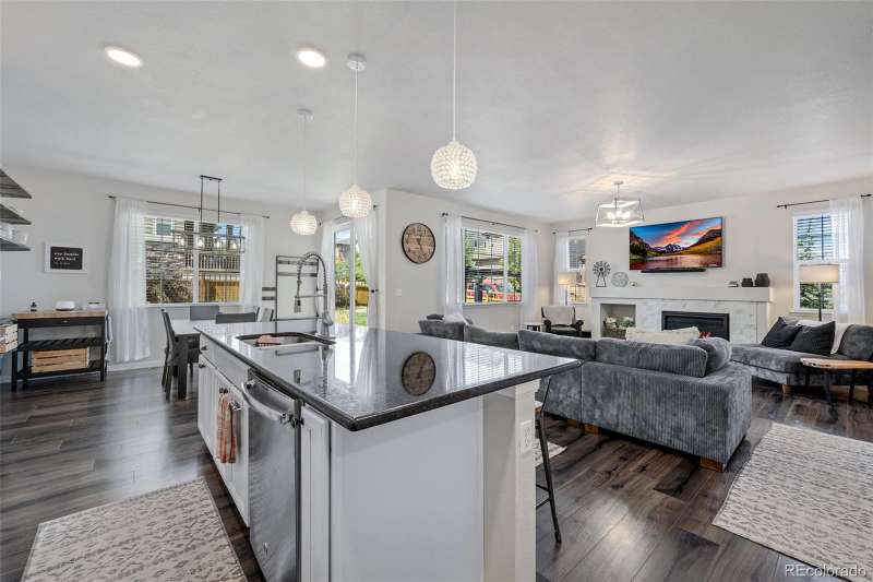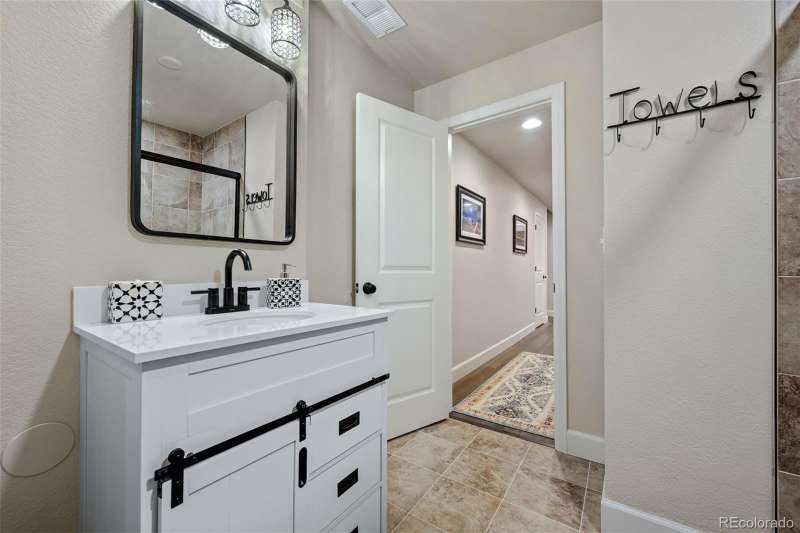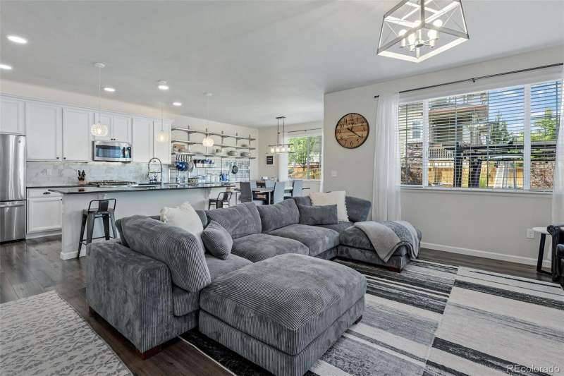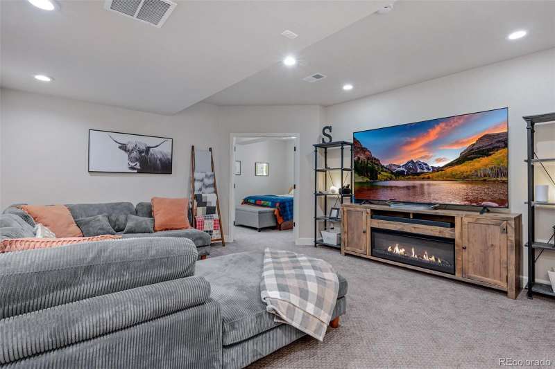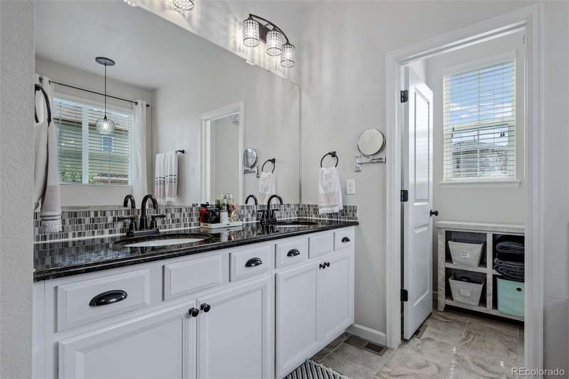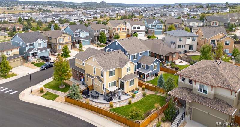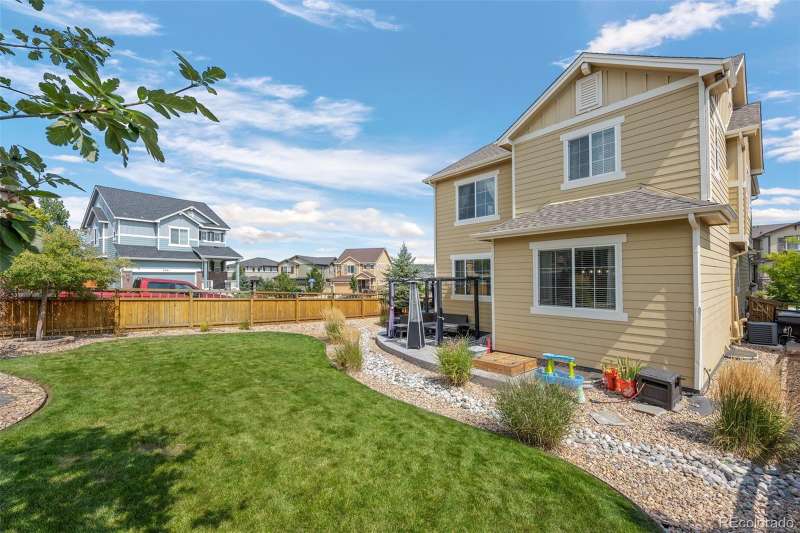 Stunning 5-Bedroom Home in The Meadows Castle Rock.Welcome to this impeccably maintained and beautifully upgraded home nestled in the highly sought-after Meadows neighborhood of Castle Rock. Boasting 5 spacious bedrooms and 5 bathrooms, this residence offers the perfect blend of functionality and modern convenience.Step inside to discover an open-concept layout flooded with natural light, luxury vinyl plank flooring on the main level and stairs, and newer carpet in the bedrooms. The gourmet kitchen features granite countertops, stainless steel appliances, upgraded sink faucets, and smart lighting, seamlessly flowing into the large living with and dining areasideal for entertaining or everyday comfort. Unique switchback ceiling lighting allows for customizable ambiancedaylight or soft glowall from the same fixture.The main floor office is ideal for remote work, complete with built-in bookshelves and stylish finishes. Upstairs, enjoy a large laundry room with stubs for a utility sink, and generously sized bedrooms with thoughtful upgrades throughout.The finished basement offers a large bedroom and bathroom along with a versatile entertainment room and kitchenette with refrigerator, microwave, dishwasher, and sink--perfect for guests, movie nights, or multi-generational living. Outside, the beautifully landscaped backyard invites relaxation with a wraparound stamped concrete patio, ideal for gatherings or quiet evenings. The 2-car garage features interlocking floor tiles for a clean, polished look.Additional highlights include: Radon mitigation system, Upgraded lighting fixtures throughout, close proximity to parks, restaurants, retail, medical facilities, and quick access to I-25 for easy commuting.This home truly has it allstyle, space, and smart upgrades in a vibrant community. Dont miss your chance to experience it in person!
