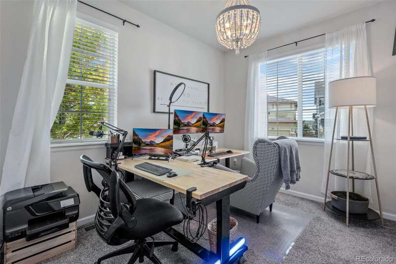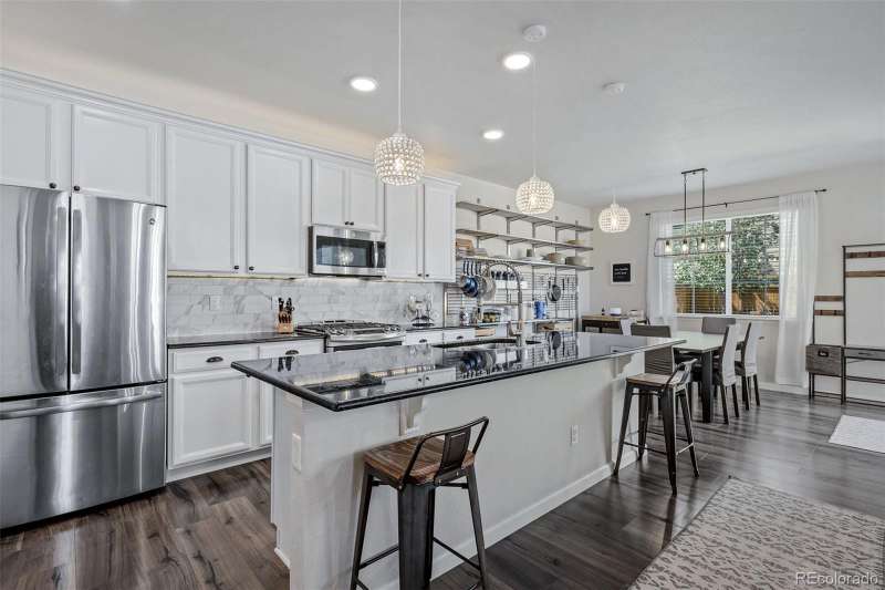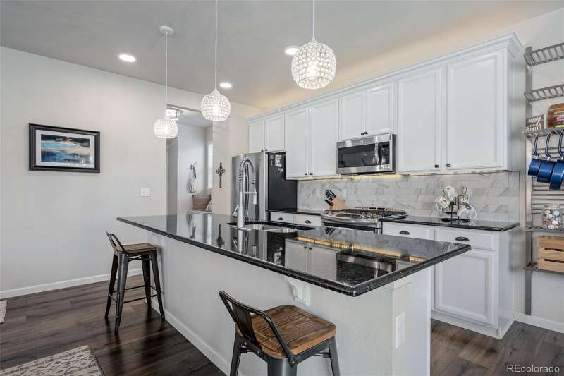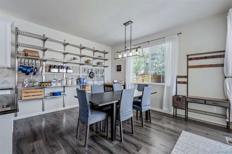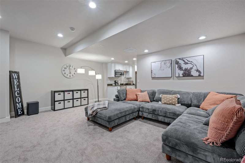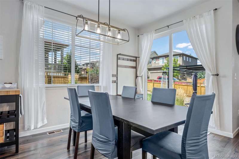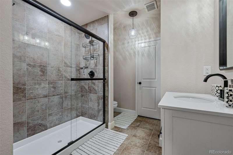 Stunning 5-Bedroom Home in The Meadows Castle Rock.Welcome to this impeccably maintained and beautifully upgraded home nestled in the highly sought-after Meadows neighborhood of Castle Rock. Boasting 5 spacious bedrooms and 5 bathrooms, this residence offers the perfect blend of functionality and modern convenience.Step inside to discover an open-concept layout flooded with natural light, luxury vinyl plank flooring on the main level and stairs, and newer carpet in the bedrooms. The gourmet kitchen features granite countertops, stainless steel appliances, upgraded sink faucets, and smart lighting, seamlessly flowing into the large living with and dining areasideal for entertaining or everyday comfort. Unique switchback ceiling lighting allows for customizable ambiancedaylight or soft glowall from the same fixture.The main floor office is ideal for remote work, complete with built-in bookshelves and stylish finishes. Upstairs, enjoy a large laundry room with stubs for a utility sink, and generously sized bedrooms with thoughtful upgrades throughout.The finished basement offers a large bedroom and bathroom along with a versatile entertainment room and kitchenette with refrigerator, microwave, dishwasher, and sink--perfect for guests, movie nights, or multi-generational living. Outside, the beautifully landscaped backyard invites relaxation with a wraparound stamped concrete patio, ideal for gatherings or quiet evenings. The 2-car garage features interlocking floor tiles for a clean, polished look.Additional highlights include: Radon mitigation system, Upgraded lighting fixtures throughout, close proximity to parks, restaurants, retail, medical facilities, and quick access to I-25 for easy commuting.This home truly has it allstyle, space, and smart upgrades in a vibrant community. Dont miss your chance to experience it in person!