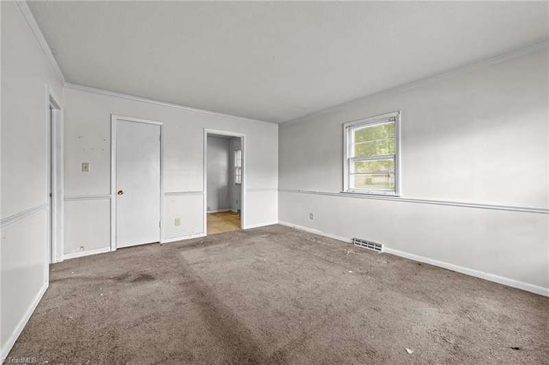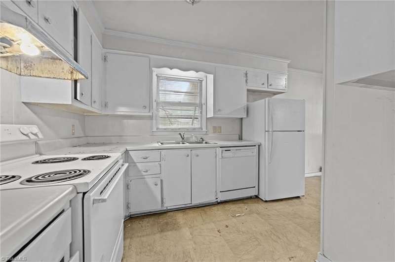 Brick ranch in West Burlington location! 3 bedrooms, 2 baths. Wood burning fireplace. Living and dining rooms with refrigerator, dishwasher & range. Large family room. Gas pack and mini split. Needs a little love! (Property will be sold AS IS) Hillcrest Elem, Turrentine Middle, & Williams High zone. (Property requires flood insurance)