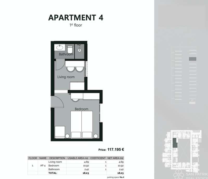 The interiors are finished with great attention to detail: bathrooms with kerok furniture resistant to water and impact, large-format ceramics, matte white sanitary ware with gold details, indirect lighting, designer interior doors and Diere security entrance doors. Apartments are equipped with a smart management system via app, while the entire complex is under video surveillance, ensuring safety and comfort.