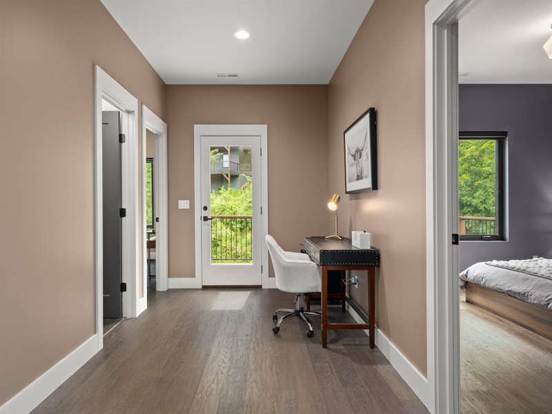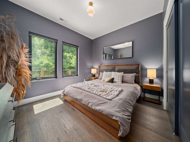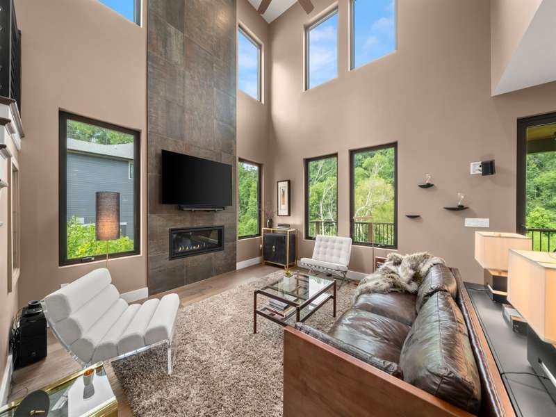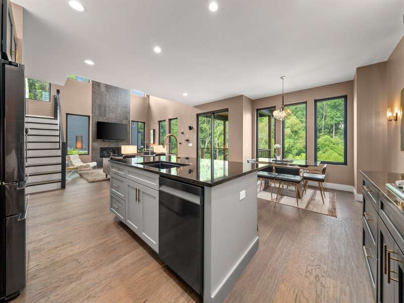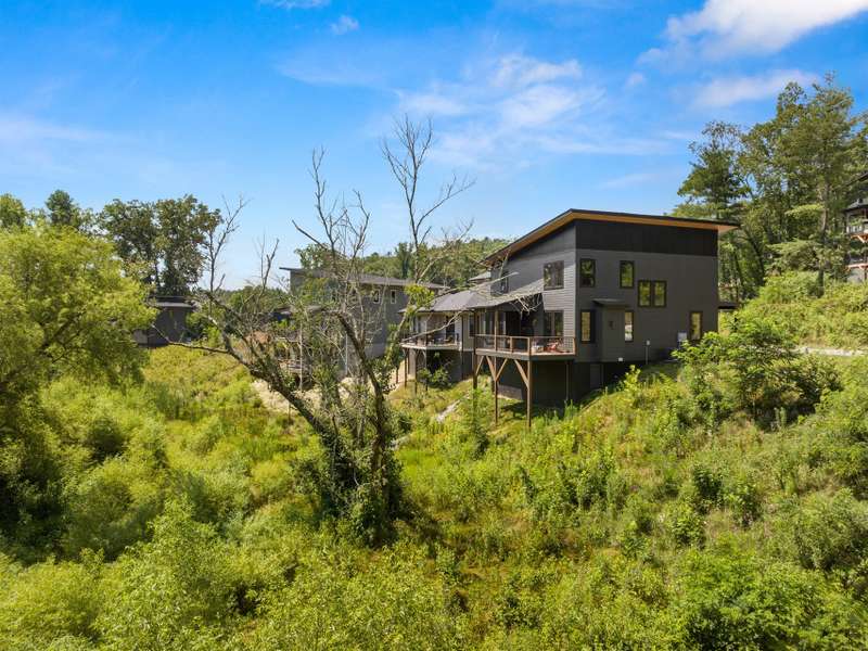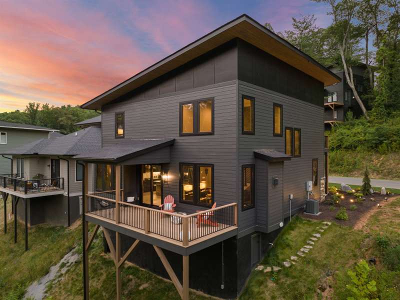 This chic retreat will impress from the minute you see it! Effortless style meets move in convenience. Every detail has been curated for both beauty and function---no renovations needed, no updates required! Situated on a very private lot in a quiet, easy walking neighborhood. Lovely flex space easily converted to 4th bedroom if desired or use as office/library/formal dining room. Large open and vaulted great room along with sleek kitchen space perfect for entertaining. Large storage area under stairwell. 3 bedrooms on 2nd floor each large enough for king size beds. The primary bedroom features walk-in closet and stylish en-suite with luxurious freestanding tub and separate spacious shower. Office/workspace 2nd floor. Enjoy an additional 2nd floor balcony. Relax on the private, spacious back deck overlooking the peaceful green belt. Perfect as a primary residence or second home. This home offers the best of design and comfort in beautiful Asheville NC!