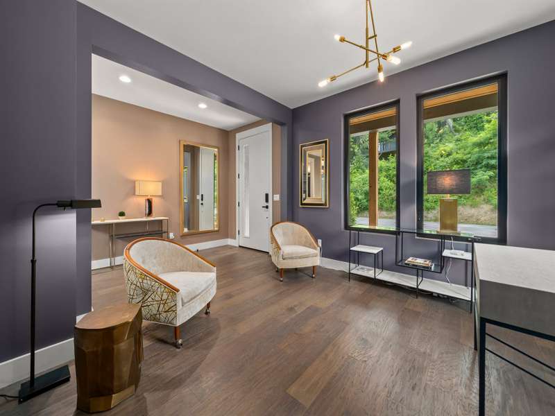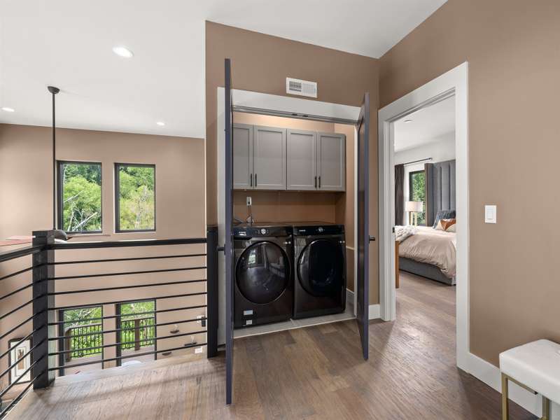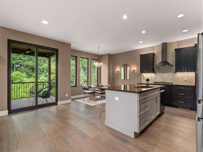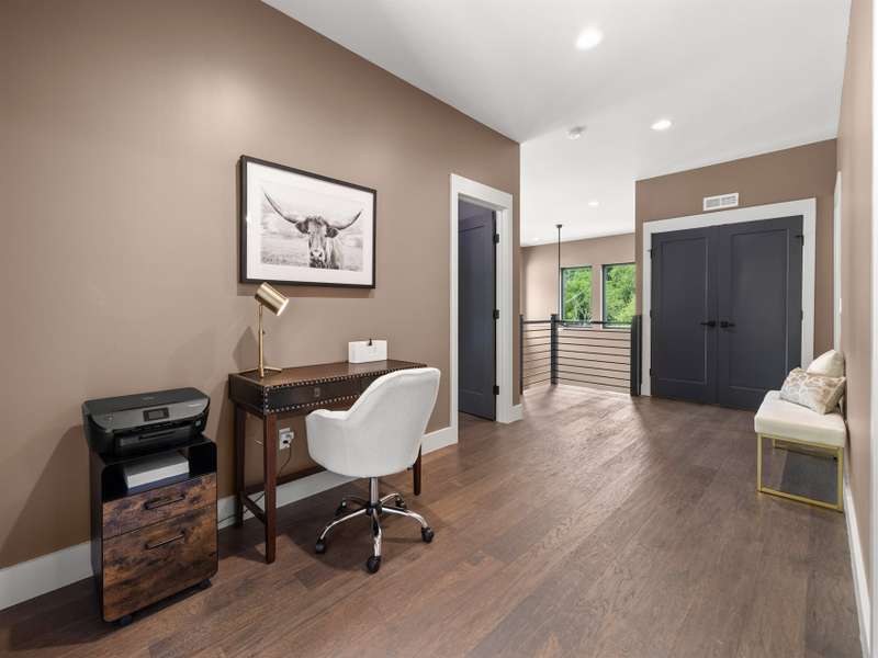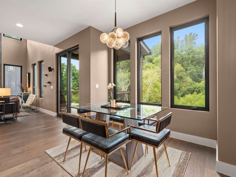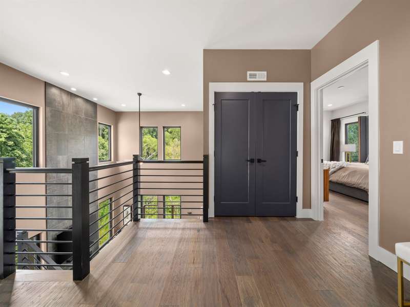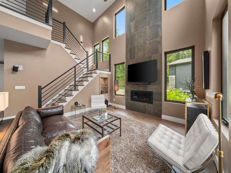 This chic retreat will impress from the minute you see it! Effortless style meets move in convenience. Every detail has been curated for both beauty and function---no renovations needed, no updates required! Situated on a very private lot in a quiet, easy walking neighborhood. Lovely flex space easily converted to 4th bedroom if desired or use as office/library/formal dining room. Large open and vaulted great room along with sleek kitchen space perfect for entertaining. Large storage area under stairwell. 3 bedrooms on 2nd floor each large enough for king size beds. The primary bedroom features walk-in closet and stylish en-suite with luxurious freestanding tub and separate spacious shower. Office/workspace 2nd floor. Enjoy an additional 2nd floor balcony. Relax on the private, spacious back deck overlooking the peaceful green belt. Perfect as a primary residence or second home. This home offers the best of design and comfort in beautiful Asheville NC!