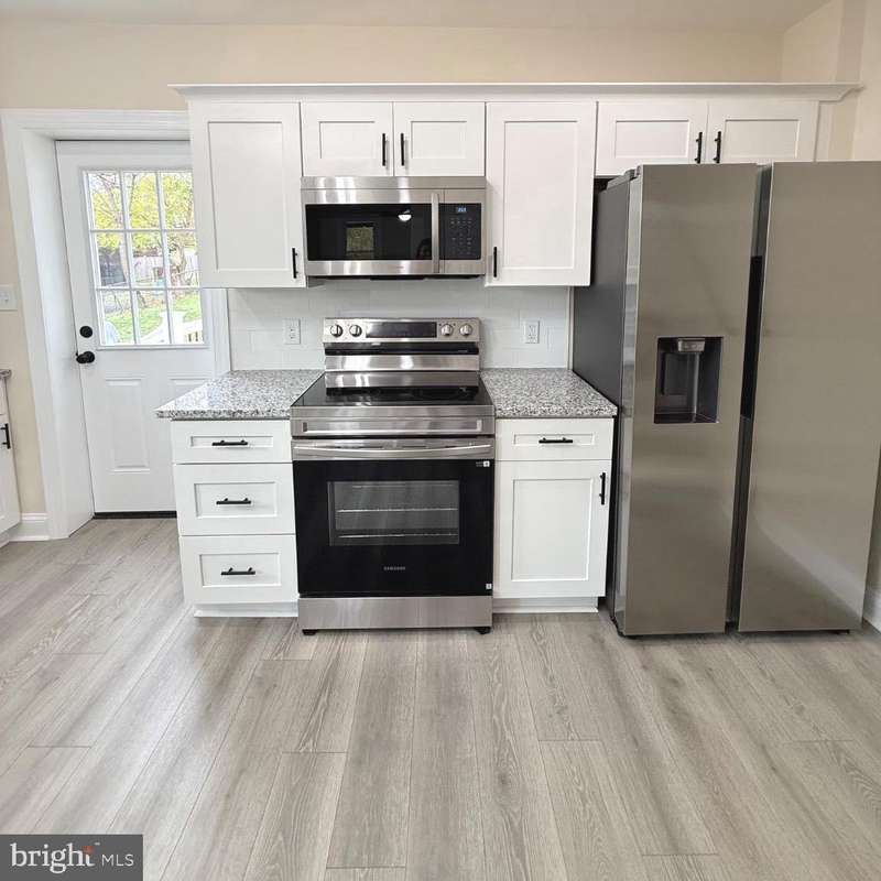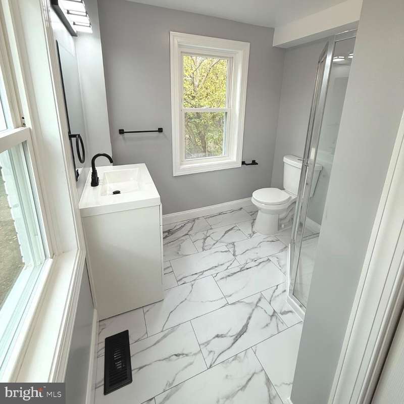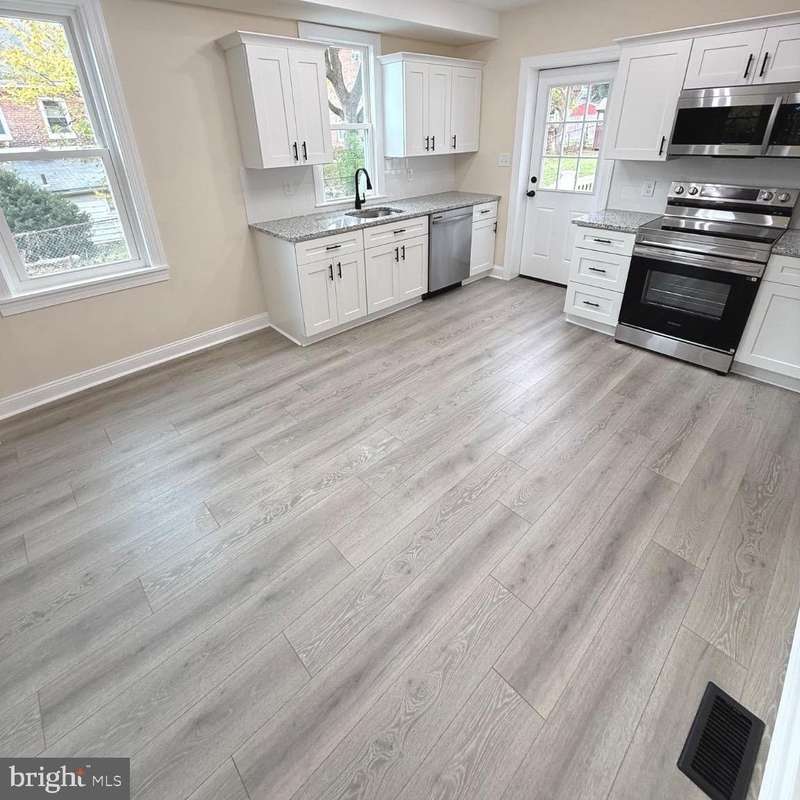 Step into this stunning, fully renovated home that perfectly blends modern comfort with classic charm. Featuring 3 spacious bedrooms and 2 full bathrooms, including a main bedroom ensuite. This home offers both style and convenience for today's lifestyle. The open-concept main level boasts laminate flooring, recessing lighting and lots of new trim, creating a bright and welcoming space. The kitchen is a true showstopper with granite countertops, new kitchen cabinets, stainless steel Samsung appliances and a garbage disposal. Enjoy the convenience of a washer/dryer hookup on the 2nd level and a host of brand new systems, including a high-efficiency HVAC system with all new ductwork, new water heater and updated 100-amp electrical service. Both bathrooms feature Bluetooth-enabled exhaust fans, allowing you to enjoy music or podcasts while you get ready--an added touch of modern luxury. Step outside and enjoy the large rear yard, rear deck and froth porch deck with vinyl railings--ideal for entertaining or relaxing outdoors. The home also offers two-car parking plus additional space, ensuring plenty of room for guests. Quality construction continues throughout with vinyl double-hung replacement windows, new siding and soffit, 30-year roof, french drain, all new plumbing (PVC & PEX) with new sewer line, new interior and exterior doors and new lighting, outlets and switches. Upstairs features brand-new carpeting for added comfort. Every detail has been thoughtfully updated--just move in and enjoy peace of mind knowing everything is brand new from top to bottom.