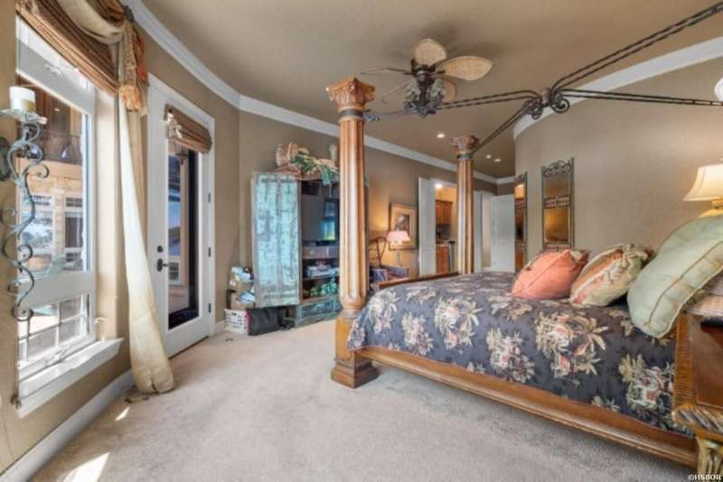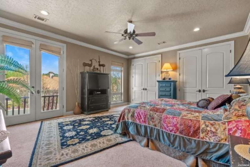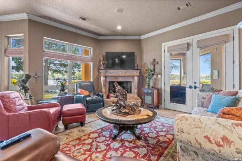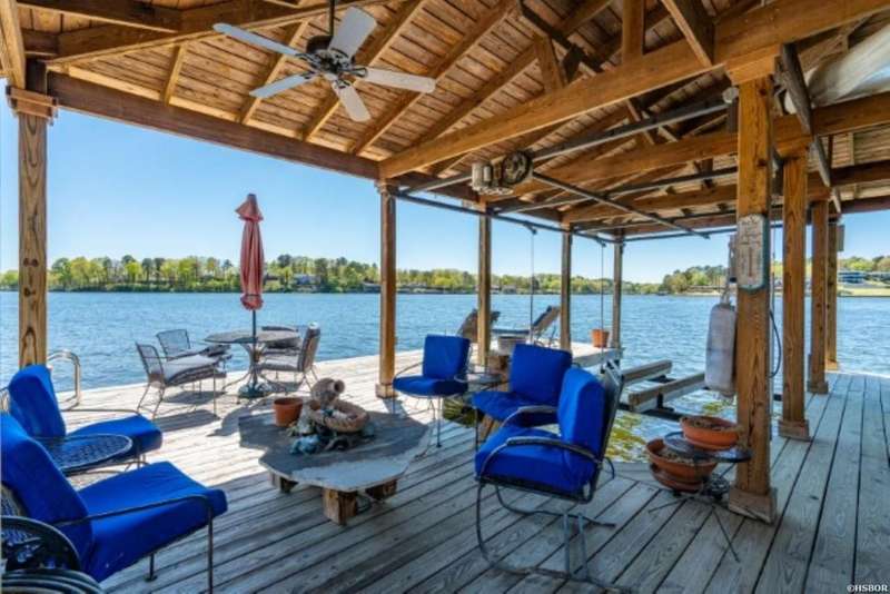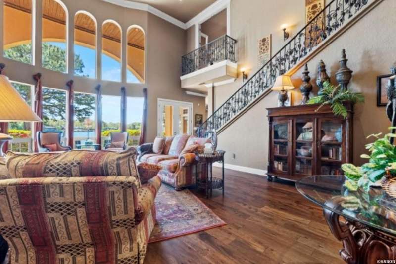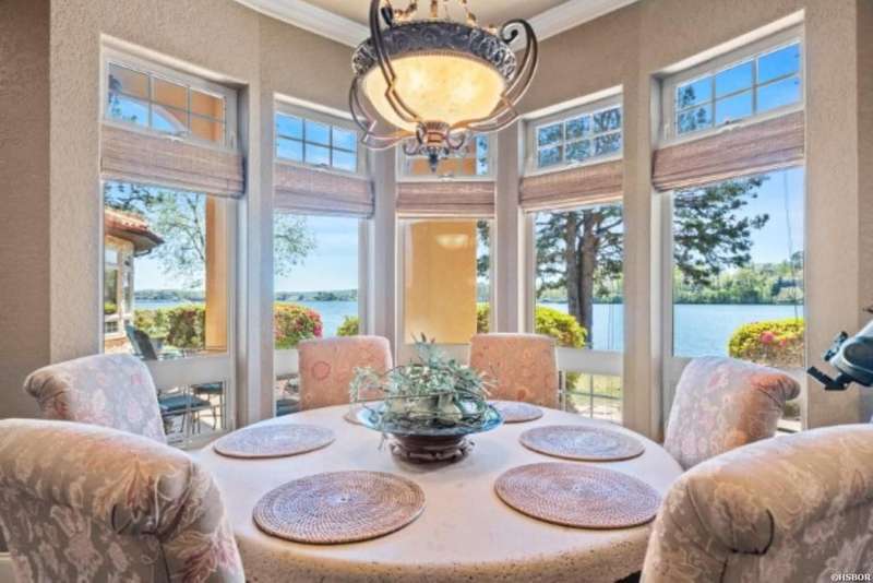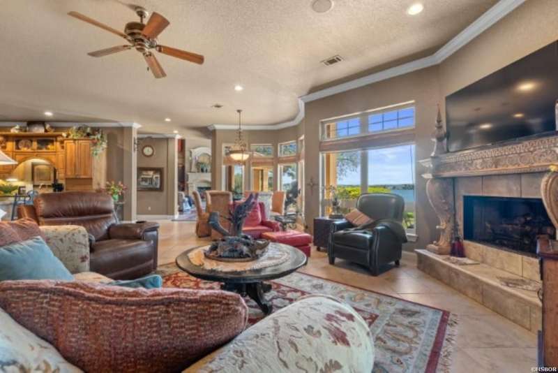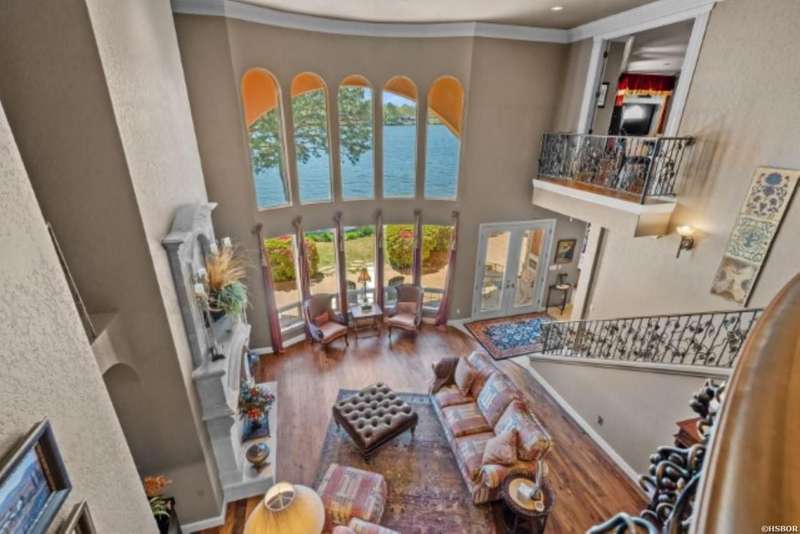 BEST VIEW ON THE LAKE! 5/5/3 lake home. Located on a large level point lot with 260' of lake frontage. Open living concept w/exceptional lake views of the main channel. Beautiful craftsmanship throughout, custom cabinets, granite countertops, crown molding. Hardwood floors in the living room & carpet in all the bedrooms. Sitting room and separate dining room. Upscale kitchen is completely custom and provides every amenity a chef could need. Guests can relax in the hearth room while meals are made. There is a large and private guest bedroom off the exercise/bonus room. Also located on the main floor is an office area/utility room. Each level has a laundry room, for convenience. Master bedroom is luxurious! It features TWO separate master bathrooms, each with its own huge WIC. This bedroom also has a coffee/wet bar and private patio access. This home has its own elevator! On the second floor you will find two guest bedrooms that share a Jack-n-Jill bathroom. A third bedroom with a private bathroom and WIC. A fantastic Game/Media room with kitchenette and 1/2 bathroom. 2 private outdoor balconies and an additional Juliet balcony overlooking the living area downstairs. Side entry 3 car garage. Double boat dock with 2 lifts. Please schedule a private showing to view this unique home! Words cannot describe the luxury and attention to detail put into this home. Whether you are hosting a dinner party, relaxing or having a game/movie night with friends this home provides every comfort.