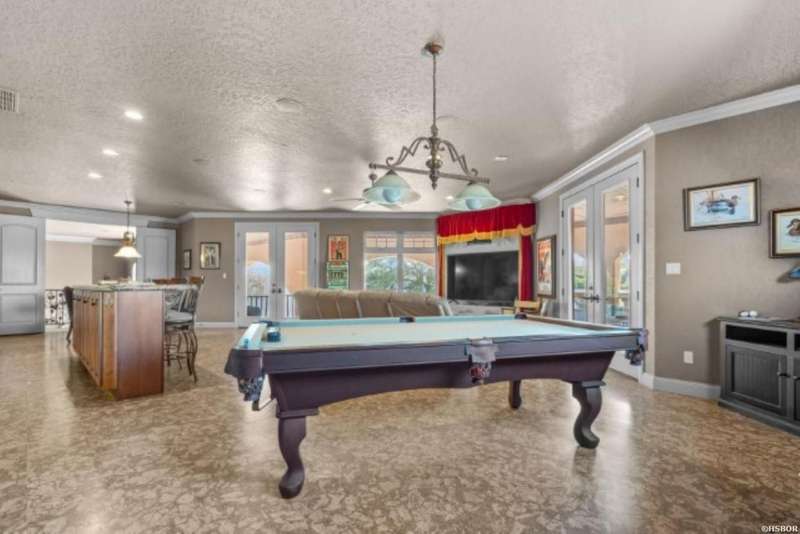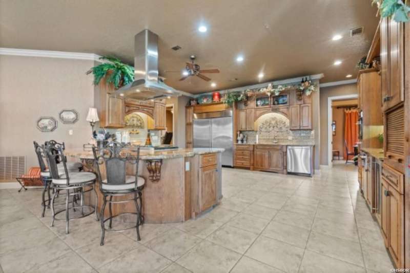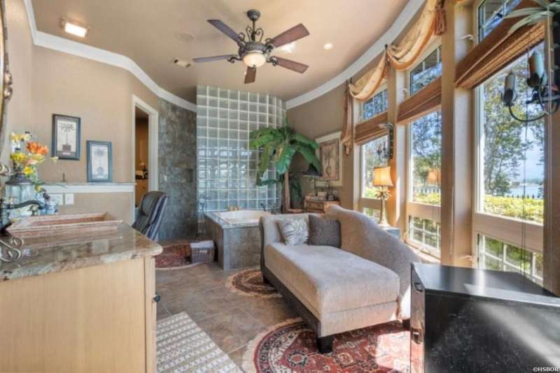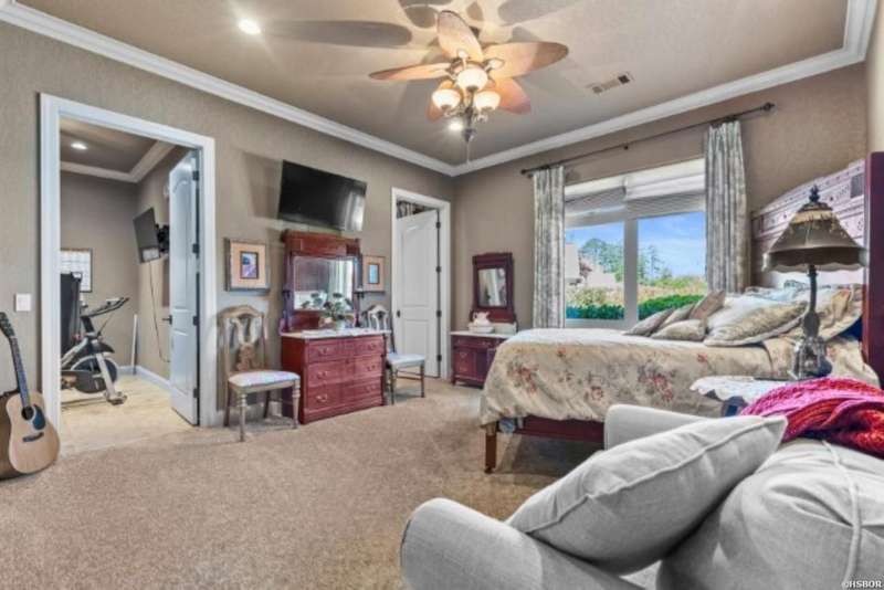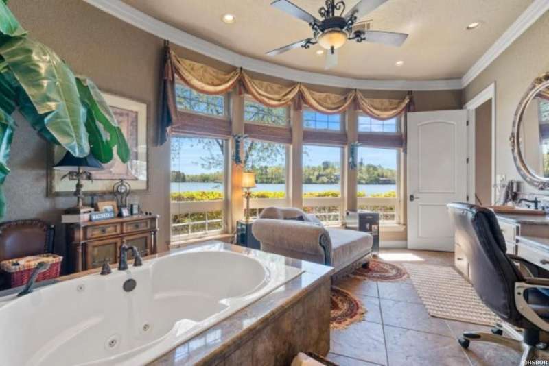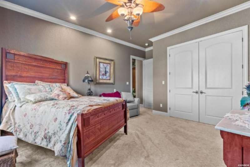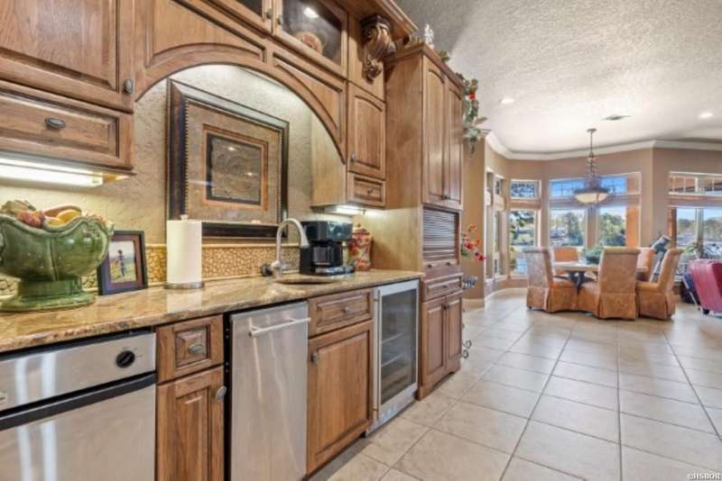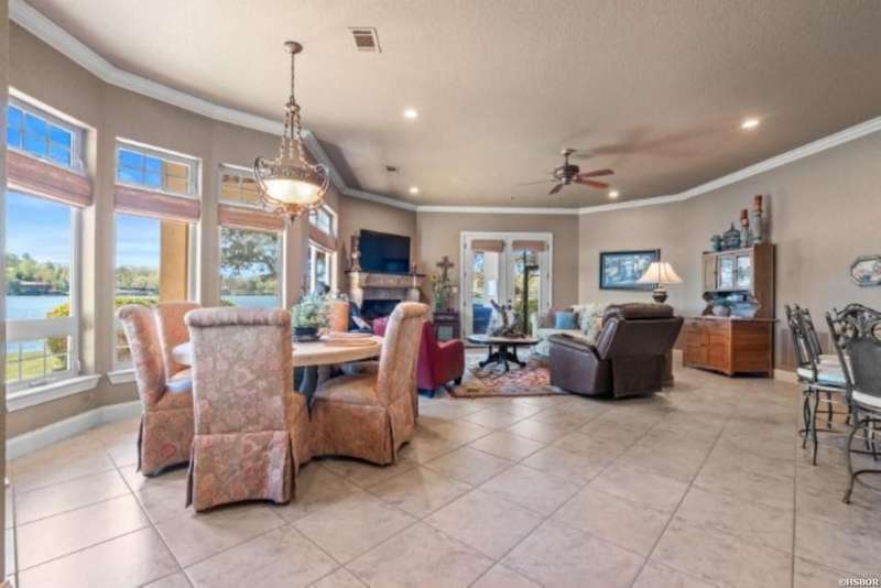 BEST VIEW ON THE LAKE! 5/5/3 lake home. Located on a large level point lot with 260' of lake frontage. Open living concept w/exceptional lake views of the main channel. Beautiful craftsmanship throughout, custom cabinets, granite countertops, crown molding. Hardwood floors in the living room & carpet in all the bedrooms. Sitting room and separate dining room. Upscale kitchen is completely custom and provides every amenity a chef could need. Guests can relax in the hearth room while meals are made. There is a large and private guest bedroom off the exercise/bonus room. Also located on the main floor is an office area/utility room. Each level has a laundry room, for convenience. Master bedroom is luxurious! It features TWO separate master bathrooms, each with its own huge WIC. This bedroom also has a coffee/wet bar and private patio access. This home has its own elevator! On the second floor you will find two guest bedrooms that share a Jack-n-Jill bathroom. A third bedroom with a private bathroom and WIC. A fantastic Game/Media room with kitchenette and 1/2 bathroom. 2 private outdoor balconies and an additional Juliet balcony overlooking the living area downstairs. Side entry 3 car garage. Double boat dock with 2 lifts. Please schedule a private showing to view this unique home! Words cannot describe the luxury and attention to detail put into this home. Whether you are hosting a dinner party, relaxing or having a game/movie night with friends this home provides every comfort.