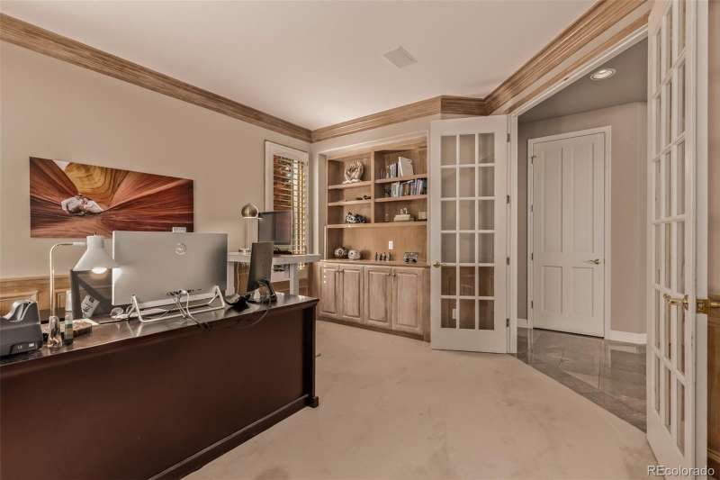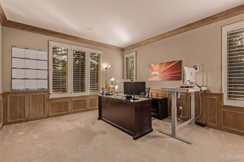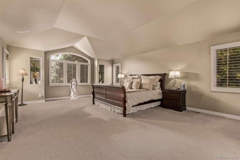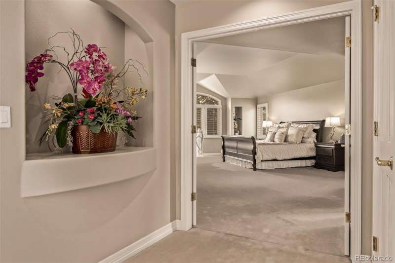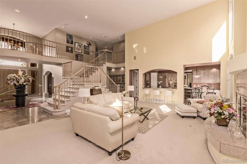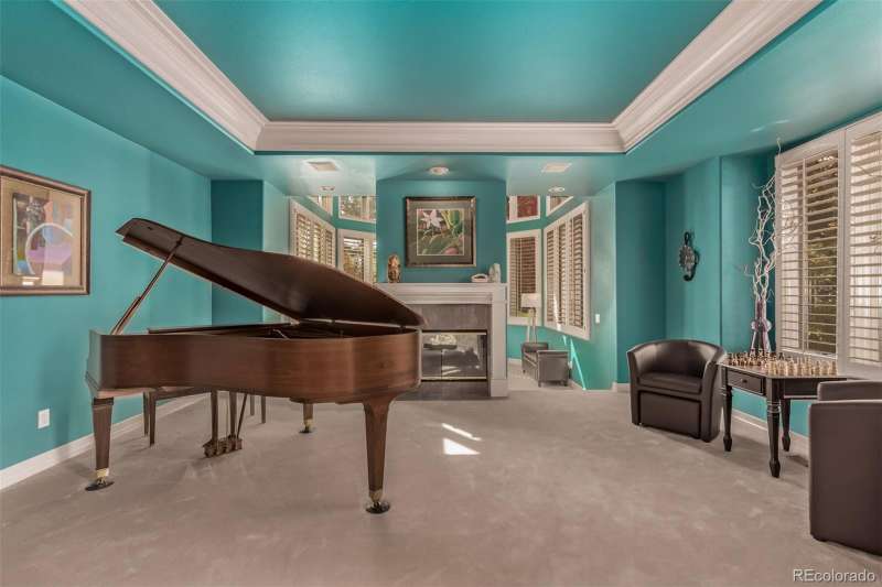 Welcome to this wonderful property in the coveted Cherry Hills Farm, a 3/4 acre site at the Southeast corner of the development. Traditional looking from the exterior with some wonderful contemporary interior design elements. The grand entry area opens to a eye popping two story Great Room, perfect for gathering & entertaining. Flanking the left of the entry is the formal dining room with coffered ceiling and butler's pantry. Going the south direction is a perfect music room with room for a grand piano and connected to a step down cozy conversation Kiva with an inviting fireplace. The kitchen has a large center island, working counter, breakfast room and all newer stainless appliances. Additionally on the main floor is a nice home office and luxurious powder room, laundry & 2nd half bath. The double sided staircase leads up to the four upper bedrooms all with ensuite baths. The large primary suite features vaulted ceilings, a see-through fireplace to a calming sitting area. The primary bath has a soaking tub, large shower and a double walk-in closet. The finished basement offers an open media & game room with an electric fireplace & wet bar. There is a gym area which is currently a space for ping pong and air hockey. There is a specialty sauna room devoted to the art of Himalayan Sea Salt and an indoor exercise pool. The is also a fifth bedroom and 3/4 bathroom. Experience the blend of classic design and contemporary living in this exceptional home, ready for your new personal touches & updating.