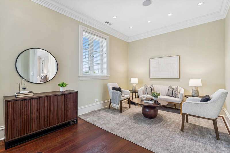 Stunning Custom-Built Home in the Heart of Lincoln Park 8000 Sq Ft | 5 Bed | 5.5 Bath | 3-Car Attached Garage, Oversized Lot Offered for the first time, this exceptional custom-built home-completed in 2008-is ideally located in Chicago's coveted Lincoln Park neighborhood. Spanning approximately 8,000 square feet with an attached 3-car garage, this residence masterfully blends timeless design with luxurious modern amenities. The main level features formal living and dining rooms, perfect for entertaining, and an open-concept kitchen equipped with SubZero and Miele appliances, marble countertops, custom cabinetry, and access to a covered patio and beautifully landscaped backyard-ideal for indoor-outdoor living. The top-floor primary suite is a true retreat, complete with a gas fireplace, private balcony with city views, two custom walk-in closets, a home office plus den, and a spa-like bath featuring a soaking tub, dual vanities, and a walk-in shower with rain head and body sprays. The second level offers three spacious en-suite bedrooms with marble and glass tile baths, a full laundry room, and a large Trex deck for additional outdoor entertaining. The spacious lower level offers exceptional flexibility for family and guests alike, complete with a full kitchen, generous en-suite bedroom, den, laundry room, and a private home theater for the ultimate in-home entertainment. Additional highlights include hardwood flooring, crown molding, marble finishes, glass mosaic tile, skylight, and ample built-in storage. Conveniently located near top-rated schools, restaurants, and shopping, this one-of-a-kind home offers elegance, space, and functionality in one of the city's most desirable neighborhoods.