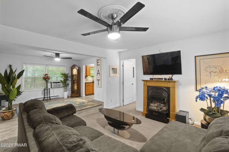 Welcome to 4 Pebble Ct -- a rare gem tucked on a peaceful cul-de-sac in the highly sought-after Hideout community. This stunning 5-bedroom, 3-bathroom ranch offers the perfect mix of privacy, space, and convenience, with everything you need right on the main level -- including the kitchen, living area, bedrooms, and bathrooms. Whether you're hosting guests or enjoying a quiet evening at home, this layout is designed for easy, comfortable living.Step inside to find an airy open-concept design filled with natural light, modern finishes, and stylish ceiling fans throughout. The living room is warm and inviting with a cozy propane fireplace, and the updated kitchen features granite countertops, stainless steel appliances, and an open flow into the dining area. The expansive front and back decks offer the ideal outdoor spaces for entertaining, relaxing, or soaking in the peaceful wooded setting.Downstairs, a fully finished lower level adds even more living space and flexibility, perfect for whatever your lifestyle needs. And when you're ready for more, The Hideout delivers -- with access to lakes, pools, golf, beaches, tennis, skiing, 24-hour security, and more. This home is the total package: location, layout, and lifestyle -- all in one.