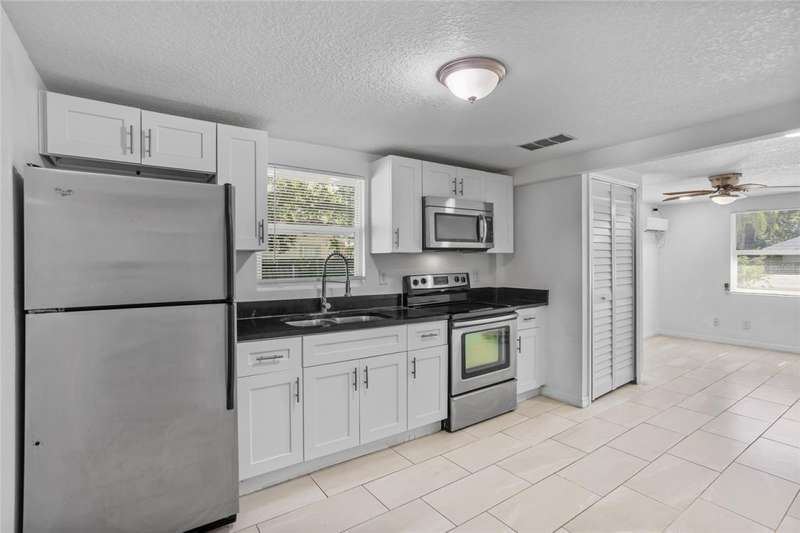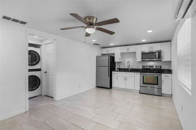 Fully renovated and income-ready, this property is a smart investment opportunity just minutes from the Orlando International Airport and The Florida Mall.Sitting on a .46-acre fenced lot, the home was completely redesigned three years ago with a modern duplex-style layout. Each side offers 2 bedrooms, 1 bathroom, a kitchen, living area, washer and dryer, and separate front entrances - ideal for generating rental income or living in one unit while renting out the other.Renovations include new ceramic tile flooring, updated kitchen and bath, new ceilings, updated plumbing throughout, and a new electrical panel - all completed within the last three years.The property also features a large, oversized garage that's foam-insulated and includes a half bath, offering potential for conversion into additional living space, a workshop, or studio. With its solid upgrades, flexible layout, and prime location near major shopping, dining, and transportation, this property delivers strong rental potential and long-term value.