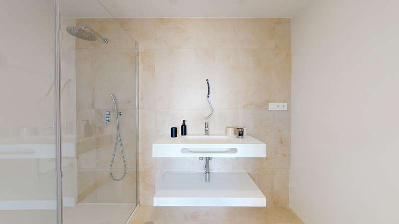 Each flat features an open-plan kitchen, a comfortable living room, an en-suite bathroom, a terrace, and a balcony. The flats are furnished with a touch of luxury and are equipped with air conditioning, white goods, walk-in showers, blinds, kitchen appliances, and satellite TV for added convenience and comfort.