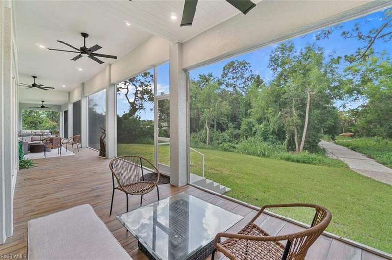 2024-BUILT ESTATE SET ON A PRIVATE 4-ACRE LOT with 200 feet of river frontage, along the Estero River, with direct Gulf-access! This custom residence offers a rare opportunity to enjoy both privacy and waterfront living. Two private docks (one with a 10,000-lb covered stainless steel lift) provide effortless water access and beautiful views across to Koreshan State Park. Designed by renowned architect Dan Sater, this property combines timeless craftsmanship with thoughtful modern upgrades, creating the ideal family compound or sanctuary for those who value space, security, and nature. Spanning over 3,000 sq ft under air, this home features 4 bedrooms, 3.5 bathrooms, with soaring ceilings ranging from 11 to 16 feet. Offers wood-beamed living spaces, hardwood flooring throughout, hurricane-impact windows and doors, and energy-efficient solar panels. The gourmet kitchen showcases Cafe GE appliance package with three ovens, while the outdoor kitchen with built-in gas grill invites year-round entertaining. Step outside to more than 1,600 sq ft of porch and patio space, plenty of room to add a pool, a 950-sq-ft 3-car garage with soaring 30-foot ceilings, a gated entry, and a 200-foot private paver driveway. Conveniently located near Coconut Point, Publix, Waterside Shops, 5th Avenue, and RSW International Airport.