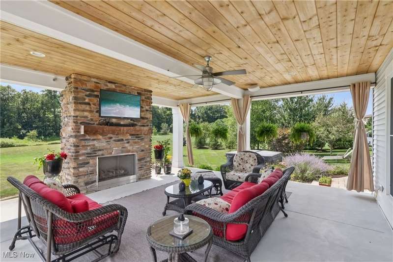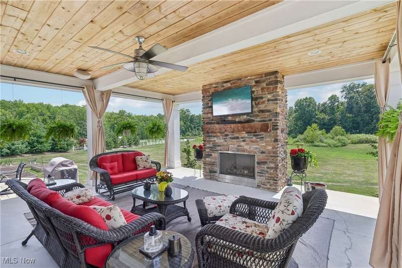 Stunning custom-built, one-owner home that shows like a model! Set on over 3 acres, this home offers elegant living and thoughtful design throughout. The spacious family room features a fireplace, built-ins, and a custom ceiling, and flows seamlessly to the covered patio with its own fireplace?perfect for year-round entertaining. The chef's kitchen is wide open for gatherings and equipped with high-end appliances, double ovens, and plenty of space to create and connect. A first-floor study provides the ideal work-from-home retreat, while the mudroom with built-in cubbies keeps daily life organized. Upstairs, the convenience of a second-floor laundry room makes chores a breeze. The luxurious master suite includes a walkout to a private second-level porch, a spa-like en suite, and a massive walk-in closet. Two bedrooms share a Jack & Jill bath, while a third has its own private bath. The finished lower level offers incredible bonus space with a full bath, a cozy man cave, and a large recreation area. Outdoors, enjoy the 3+ acres with a greenhouse featuring both water and heat?perfect for year-round gardening.